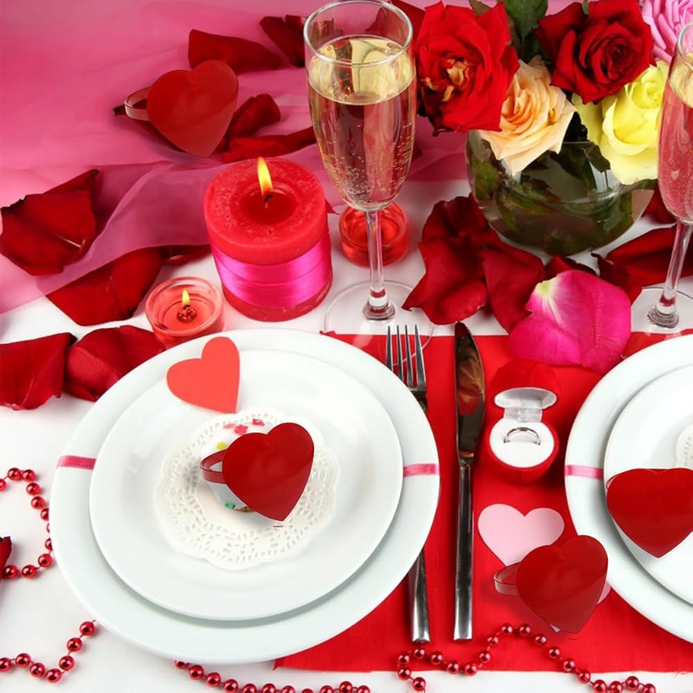 Design: The napkin ring is designed with a red heart shape, suitable for Valentine's Day, wedding and New Year