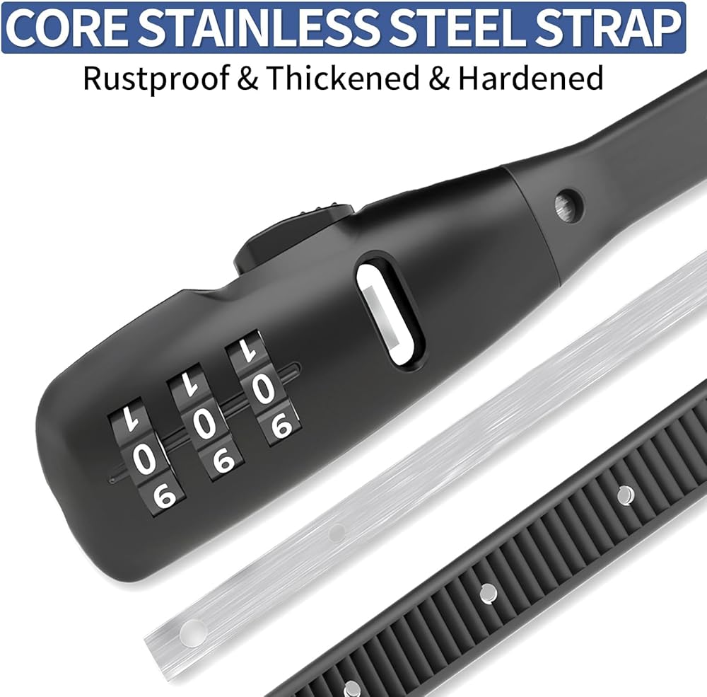 • مواصفات الأمان-يوفر هذا القفل أمانًا متوسطة المستوى ، وهو مناسب للسيناريوهات ذات المخاطر المنخفضة. يمكن أن يدعم حزام الفولاذ المقاوم للصدأ ما يصل إلى 500 رطل من القوة ، مما يوفر حماية قوية للاحتياجات اليومية. الأبعاد: 22 بوصة (L) × 0.47 بوصة (ث) × 0.22 بوصة (T). تعبئتها في كيس بلاستيكي نابض بالحياة ، مع تعليمات سريعة للمستخدم على الظهر.