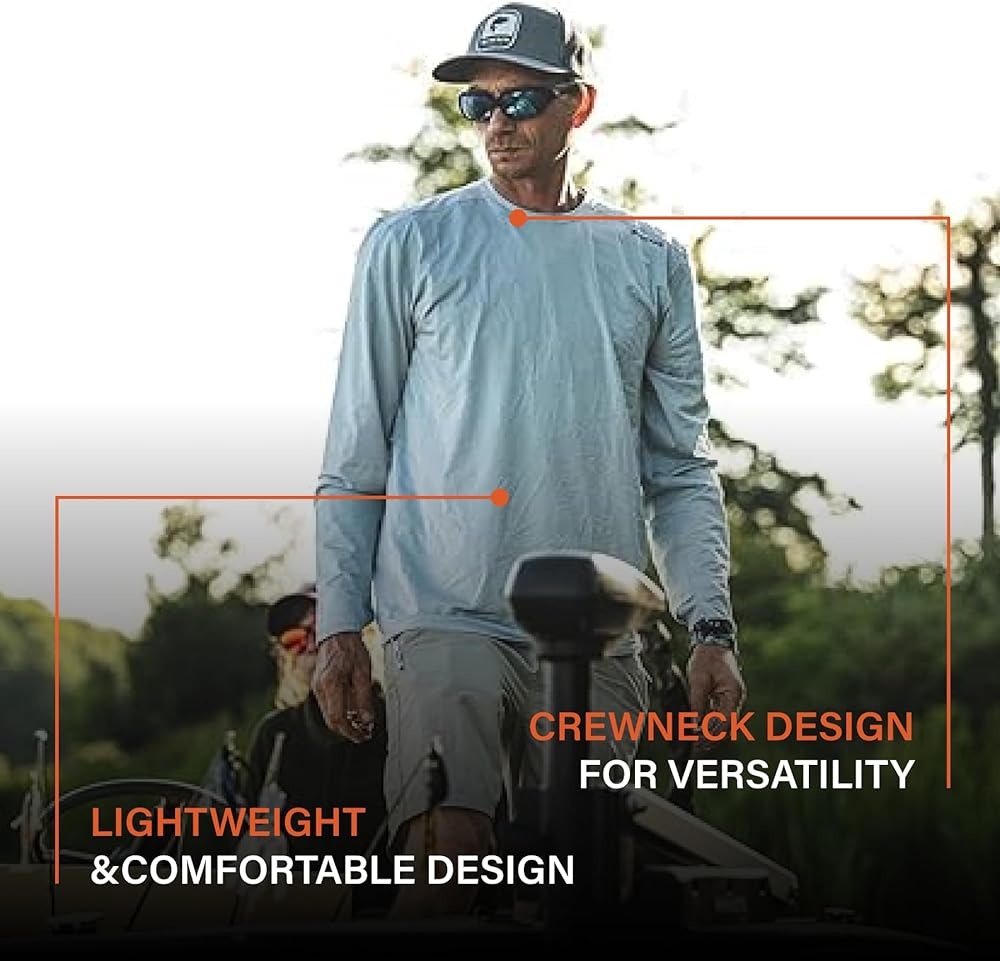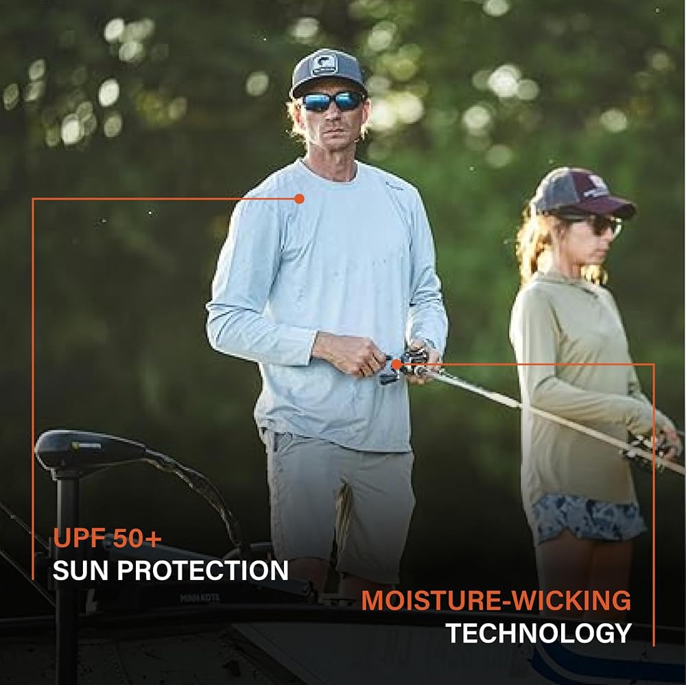 حماية من أشعة الشمس بعامل حماية من أشعة الشمس 50+: يحمي بشرتك من الأشعة فوق البنفسجية الضارة، مما يجعله حلاً أساسيًا للقميص طويل الأكمام لجميع الأنشطة الخارجية من صيد الأسماك وركوب الدراجات الجبلية والتجديف والمزيد.