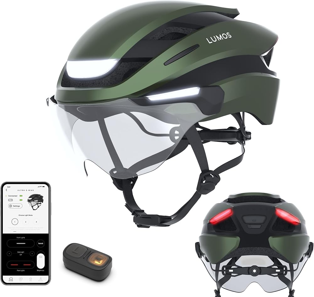 ابق مرئيًا وتواصل دون عناء: تتميز الخوذة بإشارات انعطاف مدمجة للدراجة يتم التحكم فيها عن طريق جهاز تحكم عن بعد لاسلكي مثبت على المقود لتعزيز السلامة وتجربة اتصال سلسة. قم بتخصيص أنماط LED والسطوع وتتبع الرحلة باستخدام تطبيق Lumos.