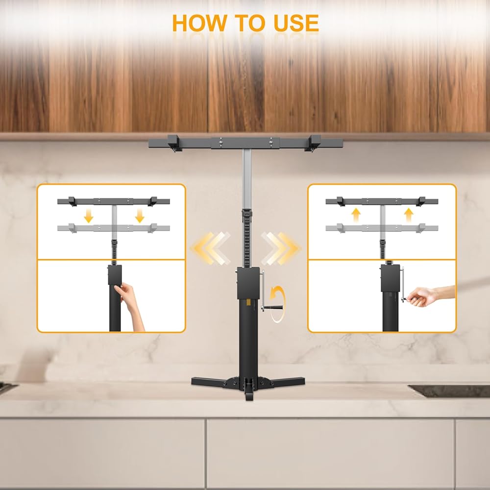 قابل للتطبيق على نطاق واسع: يمكن استخدام هذا المنتج ليس فقط لتركيب الخزانات أو الأسقف أو أغطية المطبخ، ولكن أيضًا لدعم الطاولات أو الأرائك أثناء التنظيف، مما يجعله مناسبًا لك للتنظيف والكنس. إنه الخيار الأفضل لإعطائه لصديق عامل أو زوج من حولك