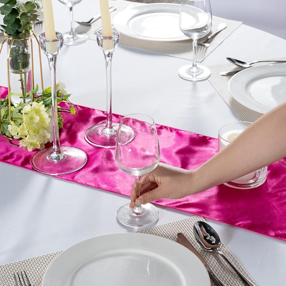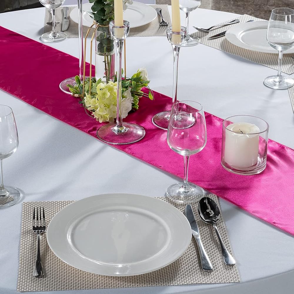1 TABLE RUNNER PER ORDER: Great for decorating dinner tables, this dark pink table runner measures 108 inches in length by 12 inches wide. Each order contains 1 satin table runner.
