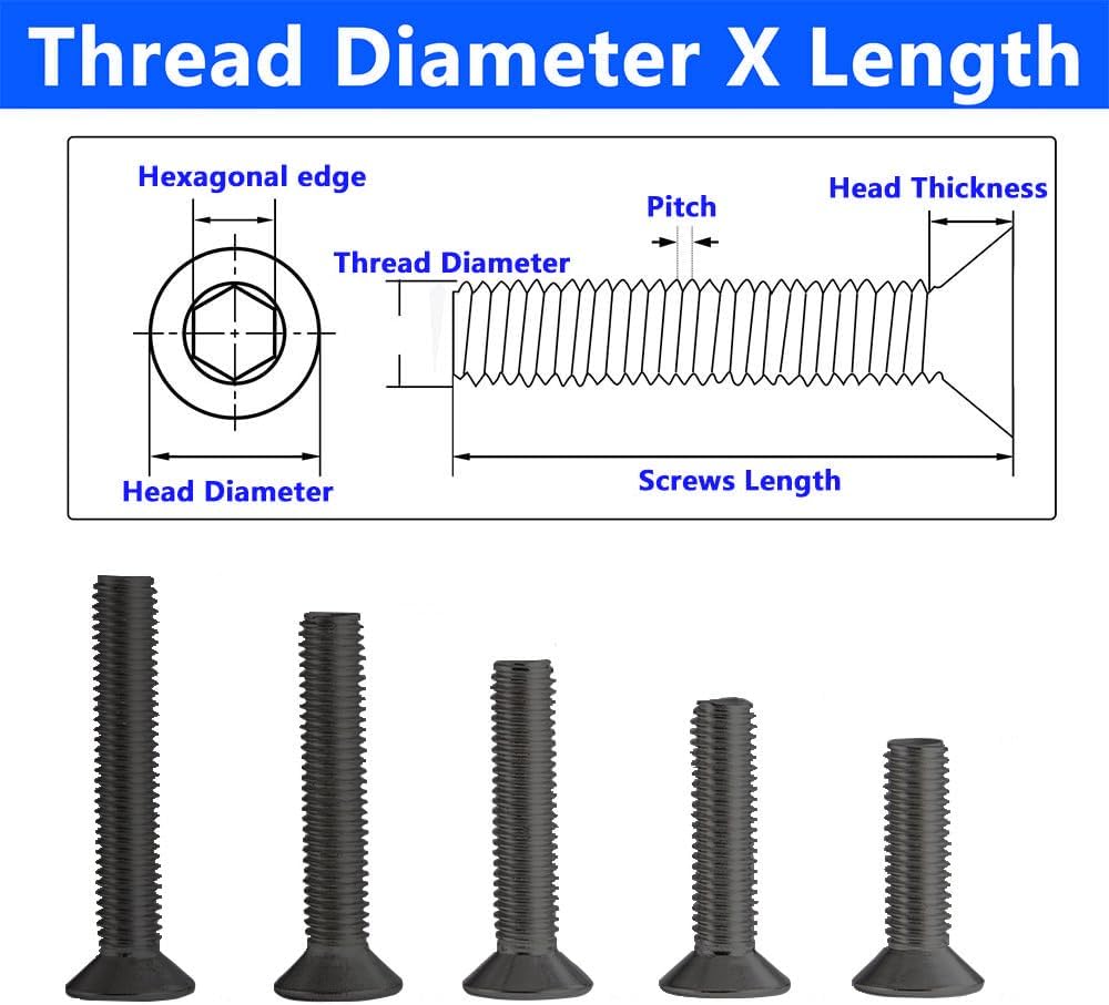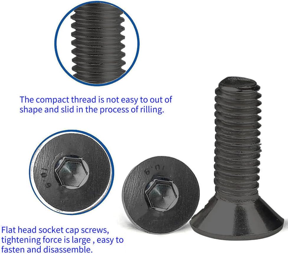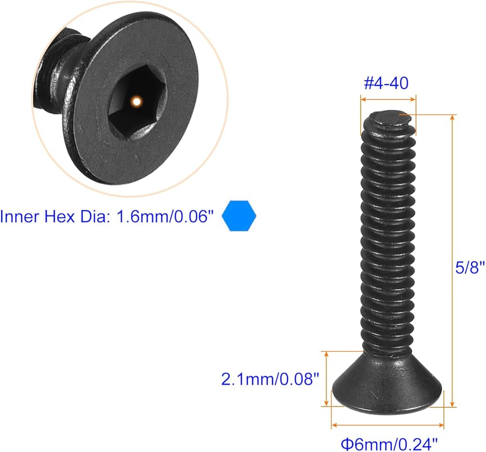 【Size】Drive Type: Hex Socket; Head Style: Flat Head; Material: 10.9 Grade Carbon Steel; Model:#4-40 x 5/8"; A variety of sizes to meet your needs for different projects.