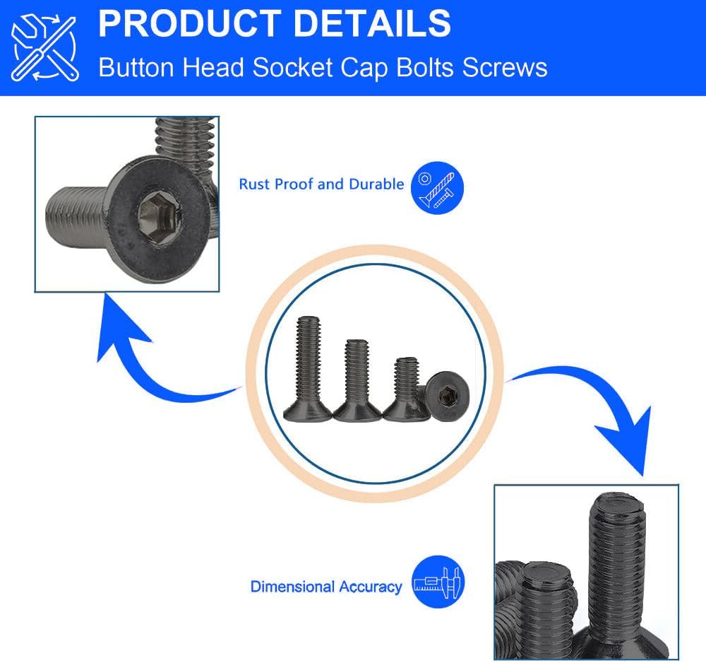 【Advantages】Flat head socket cap screws are great to have around for use in wet environments and have strong oxidation resistance. They are strong, corrosion-resistant, and will support all of your projects.
