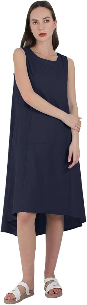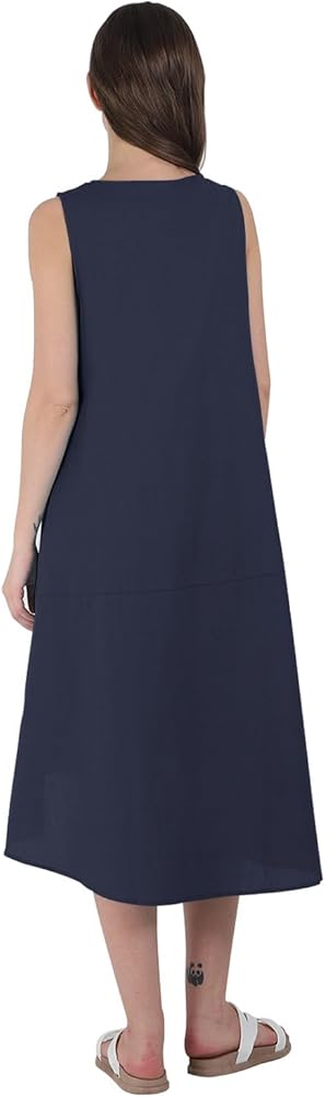 【تصميم أنيق】يتميز هذا الفستان النسائي المصنوع من الكتان بدون أكمام ورقبة دائرية، بسيط وعصري. هذا الفستان متوسط الطول بدون أكمام مثالي للمرأة التي ترغب في الحفاظ على الراحة والتحرر طوال الوقت. خيارك الأفضل!