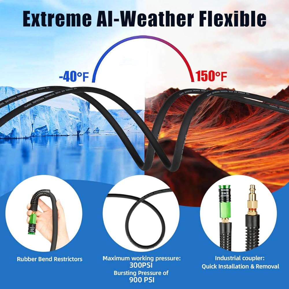 3/8 "× 10 قدم خرطوم هواء يوفر تحكمًا مرنًا ومرونة محسّنة مقارنة بخراطيم ضاغط الهواء القياسي ، وهو خفيف الوزن للغاية لسهولة الوصول إليه في جميع الأوقات