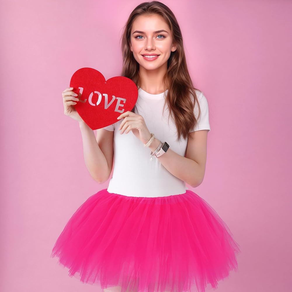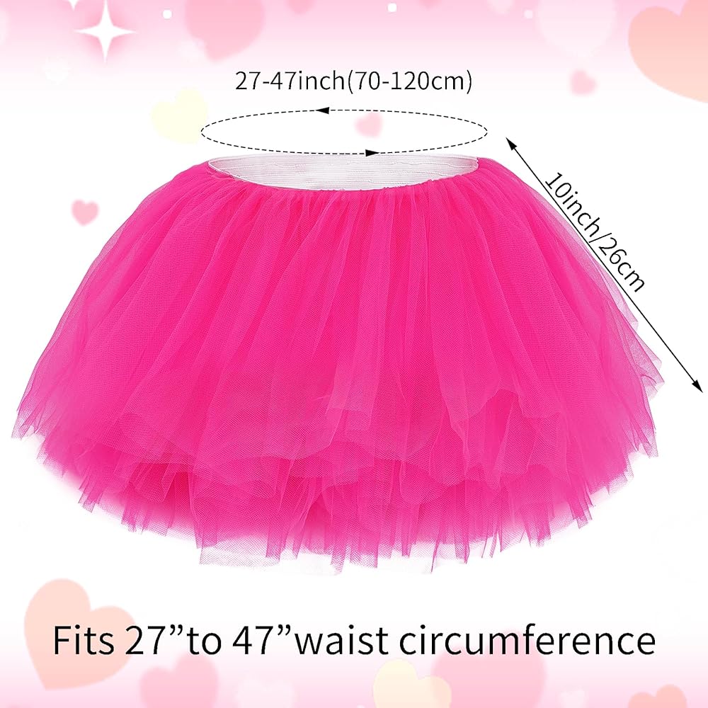 إضافة مطابقة متعددة الاستخدامات: يبلغ طولها حوالي 10 بوصات، تنورة التول ذات الطول الصغير باللون الأحمر الوردي مناسبة لمجموعة متنوعة من الأزياء، مثل زي عيد الحب، زي راقصة الباليه، زي البجعة، زي الليفة، زي الثمانينيات، زي الجنية والمزيد