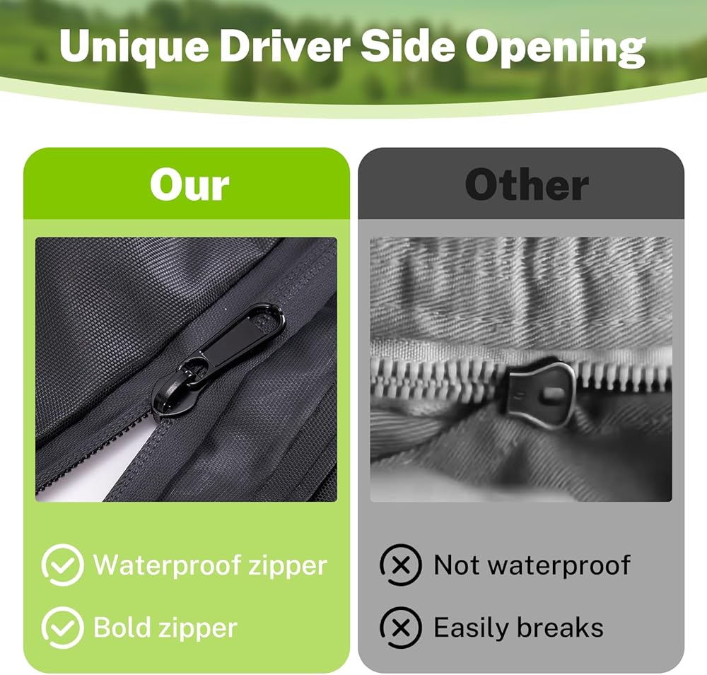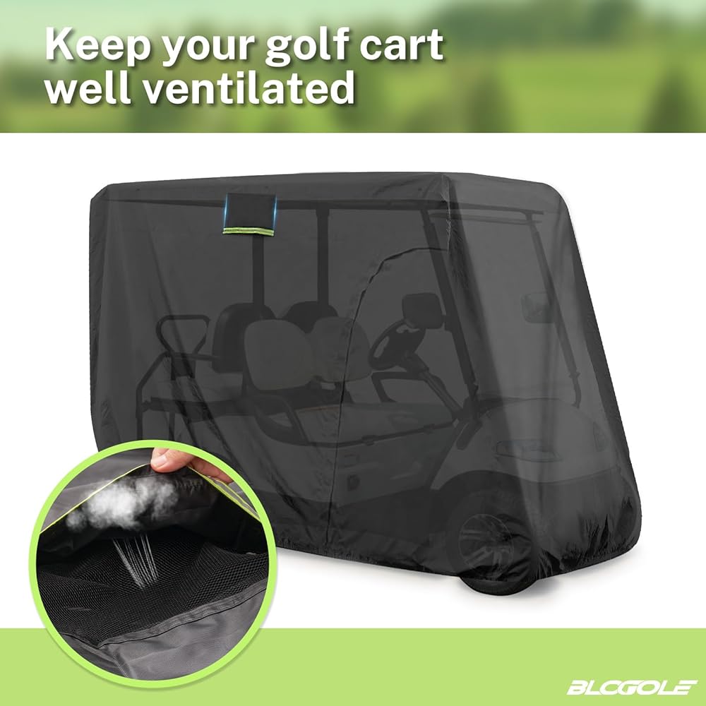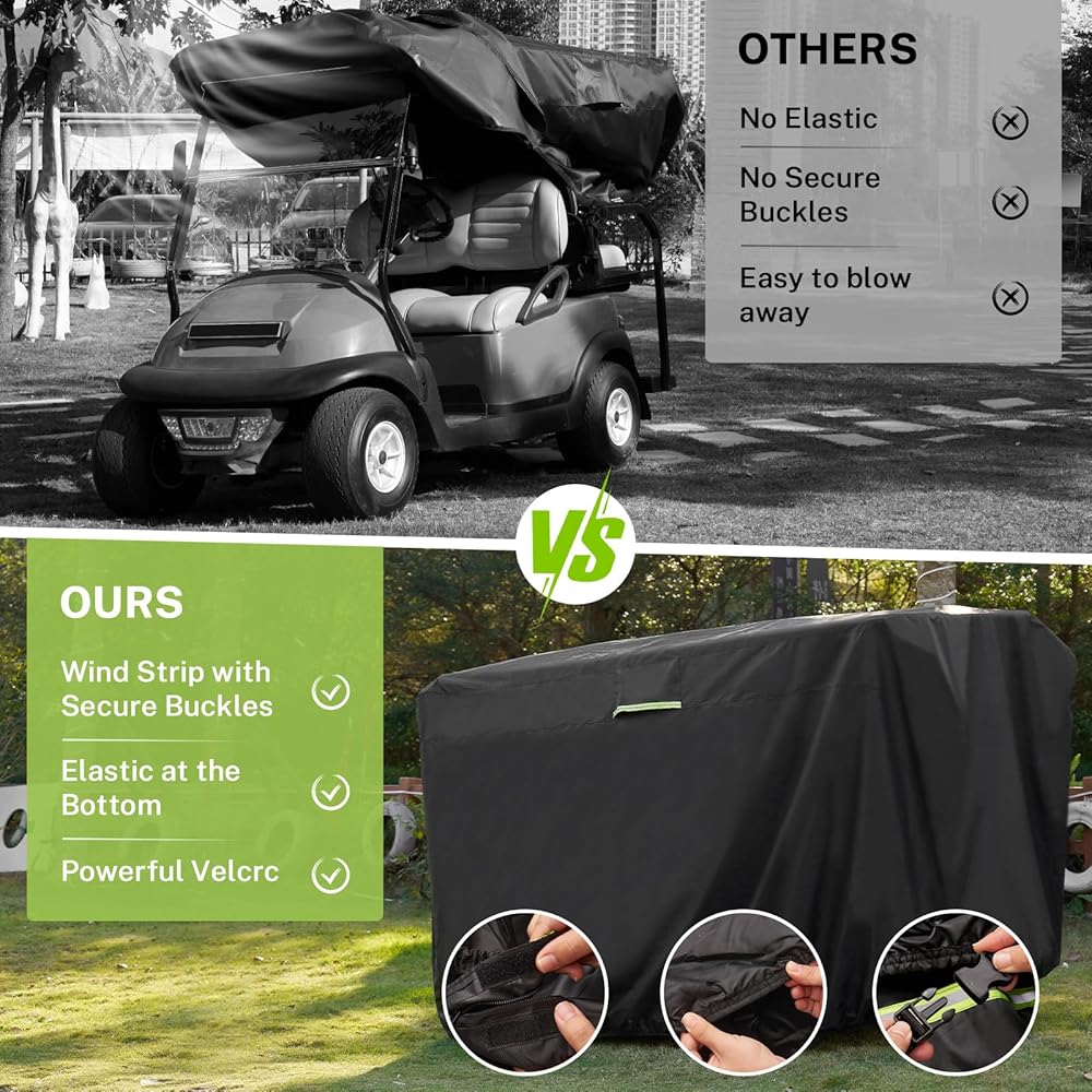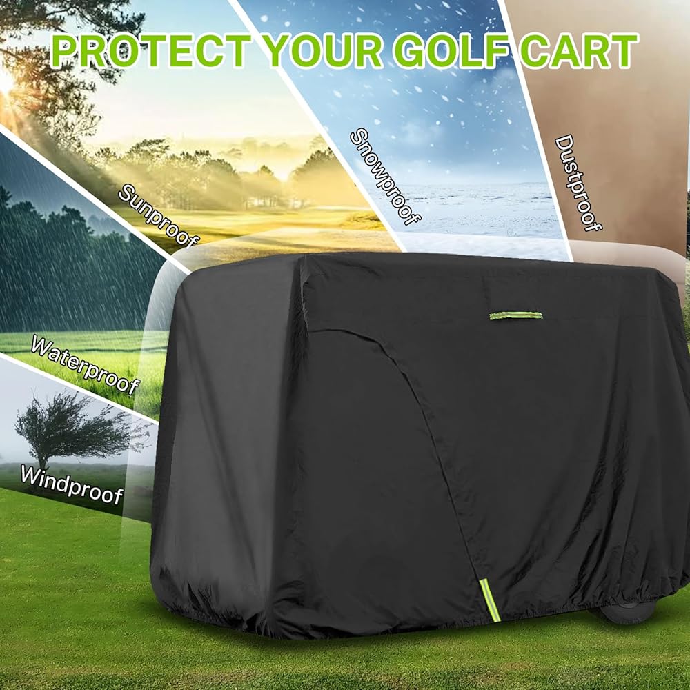 حماية ممتازة في الهواء الطلق - يتكون غطاء عربة الجولف من مواد متميزة مع طلاء إضافي ، مما يوفر حماية استثنائية مقاومة للماء ، ومقاوم للشمس ، وحماية مقاومة للغبار ضد الأمطار ، والأشعة فوق البنفسجية ، والثلوج ، والثلوج ، والغبار ، والخدوش ، وغيرها من الظروف الجوية القاسية.