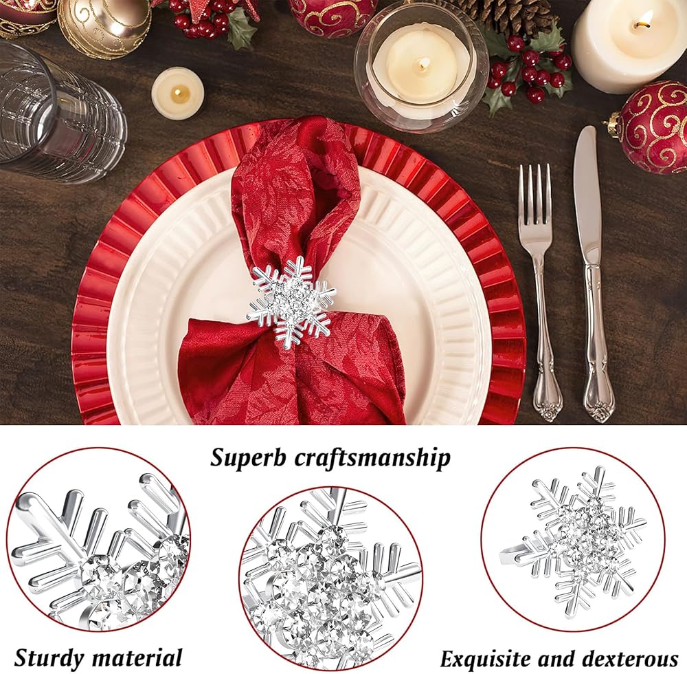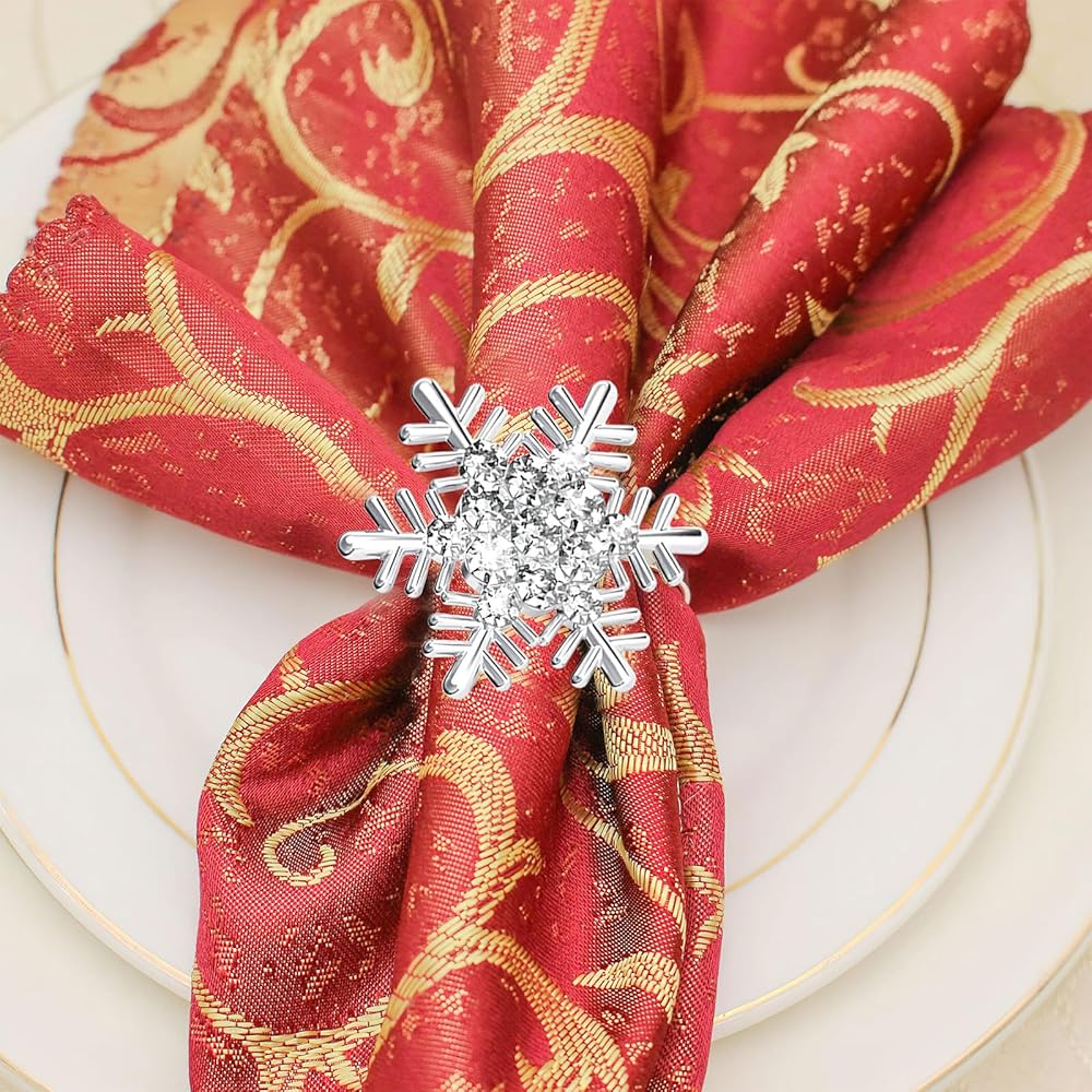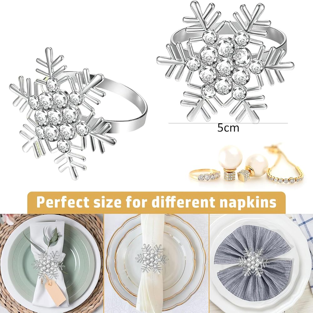 Package Includes: There are 6 pieces metal napkin rings with snowflake diamond in this package, perfectly match a variety of table settings and accessories. The abundant quantity can meet your daily life usage, add shiny for your table, everyone will be impressed by the subtle yet eye-catching touch