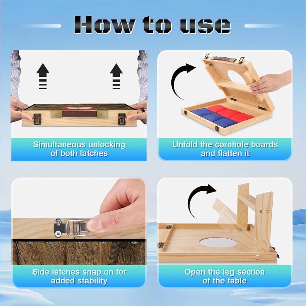 مجموعة فتحات الذرة القابلة للطي: يمكن طي لعبة ثقب الذرة وتثبيتها بسهولة في مكانها. الوظيفة القابلة للطي مناسبة للتخزين والنقل ولا تشغل مساحة