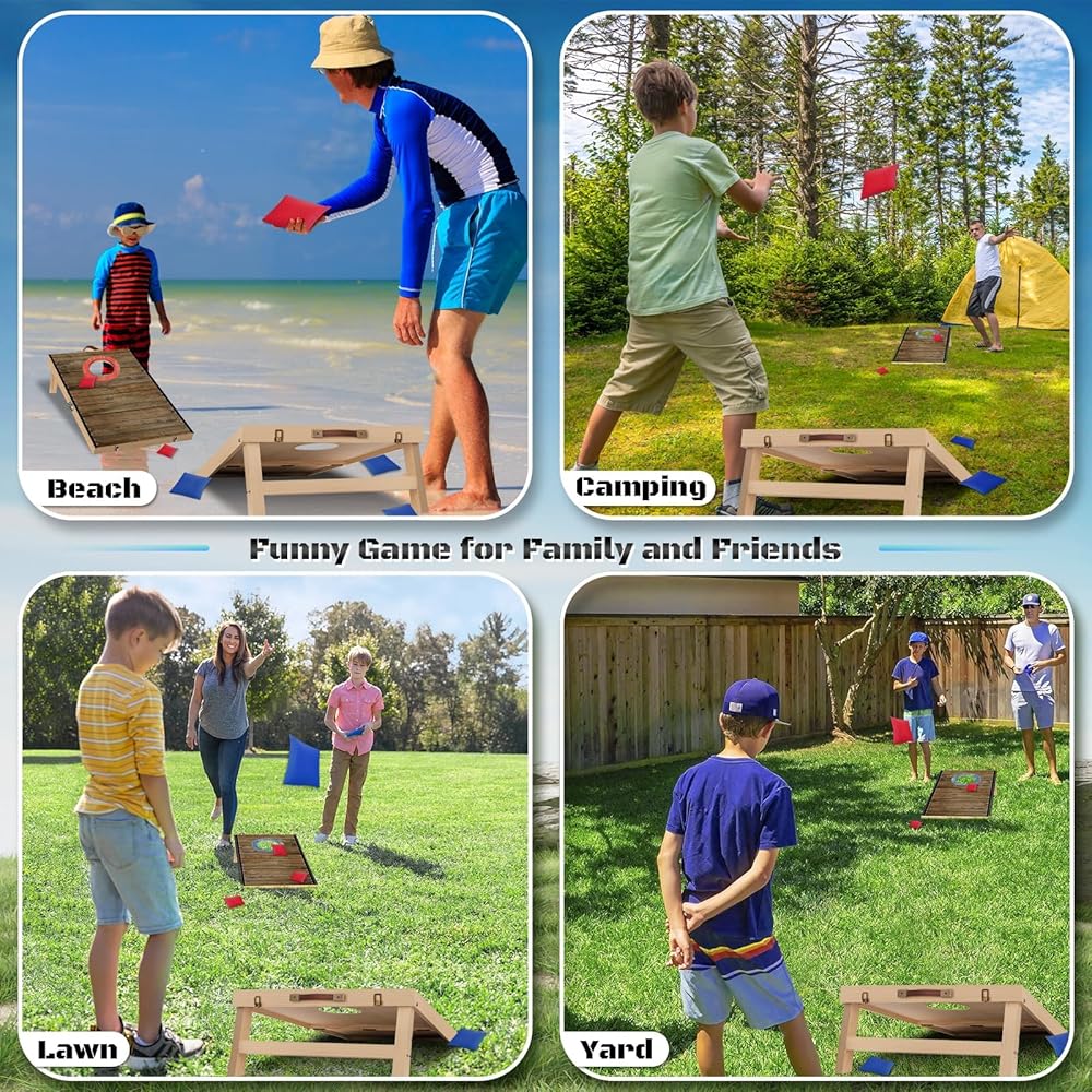 مجموعة كورنول محمولة محمولة 2 قدم × 1 قدم من خشب الخشب الصلب مجموعة مع 6 أكياس الفاصوليا ولعبة الحافظة القابلة للطي للبثعة للأطفال والبالغين في داخلي أو في الهواء الطلق ألعاب الرملة الخشبية الخفيفة
