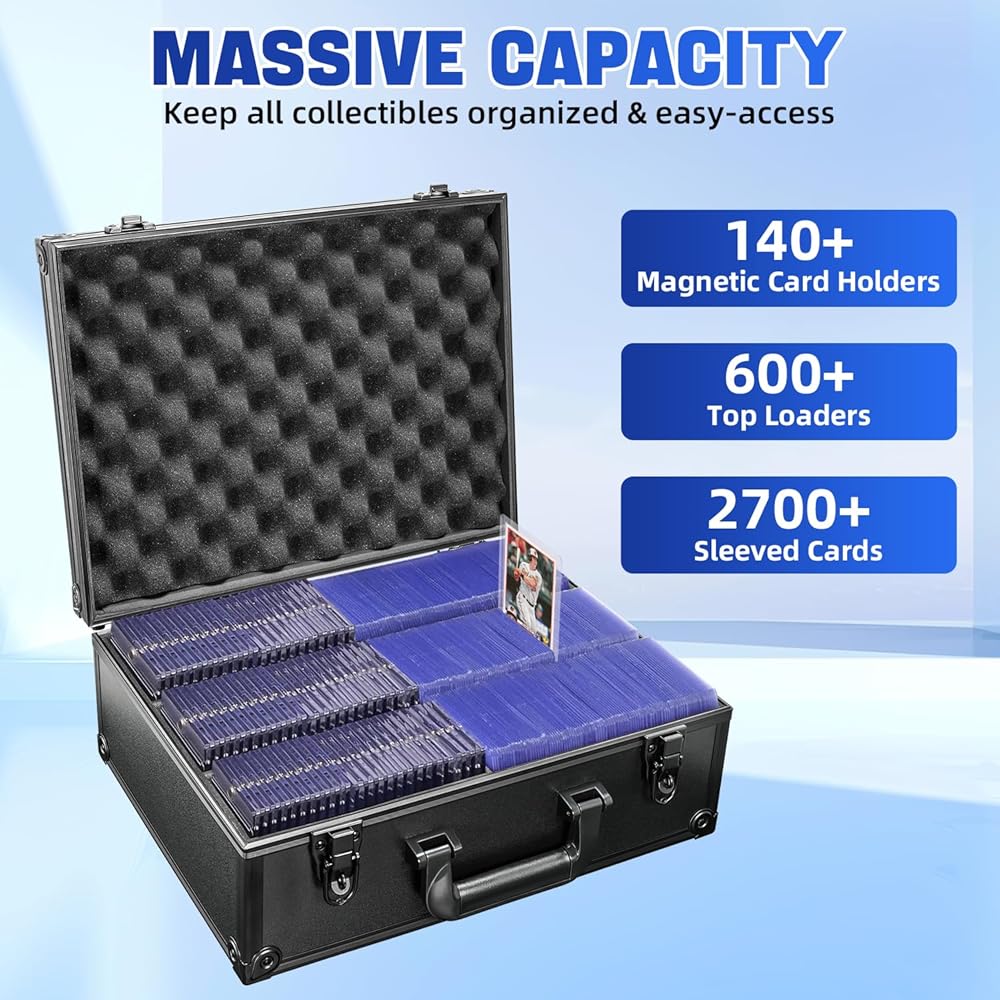 • 【سعة لا مثيل لها لتخزين البطاقات الشامل】 صندوق تخزين Toploader الخاص بنا يتميز بسعة لا تقبل المنافسة ، حيث يحمل ما يصل إلى 601+ لوادر أعلى أو 136+ من حاملي البطاقات المغناطيسية. مثالي لعشاق بطاقات التداول ، يعد صندوق تخزين البطاقات هذا مثاليًا لتخزين بطاقات البيسبول ، وتخزين البطاقات الرياضية ، والمزيد. يسمح التصميم الداخلي الفسيح بتصنيف وإدارة مجموعة البطاقات الواسعة.