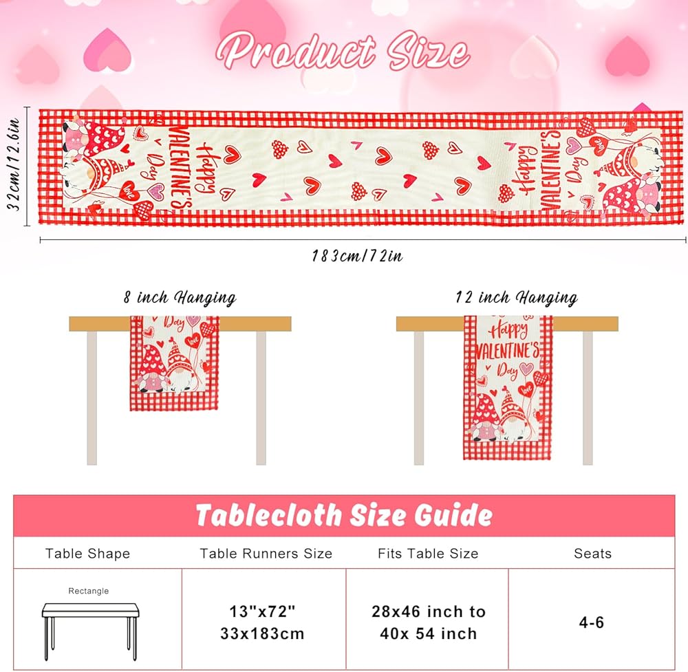 ❤يناسب مقاس الطاولة: مفرش طاولة منقوش بطول 33.02 × 182.88 سم. مفرش الطاولة هذا على شكل قلب مناسب لطاولة تتسع لـ 4-6 أشخاص.