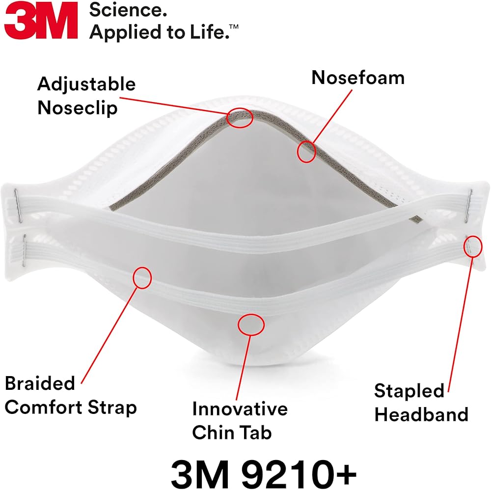 The patented 3M Aura 9200+ Series Particulate Respirators are lightweight, disposable respirators designed to provide convenient, reliable respiratory protection against certain non-oil based particulates. 3M uses a variety of innovative technologies and features to help you meet your respiratory protection and comfort needs. NIOSH approved for at least 95 percent filtration efficiency against certain non-oil based particulates.