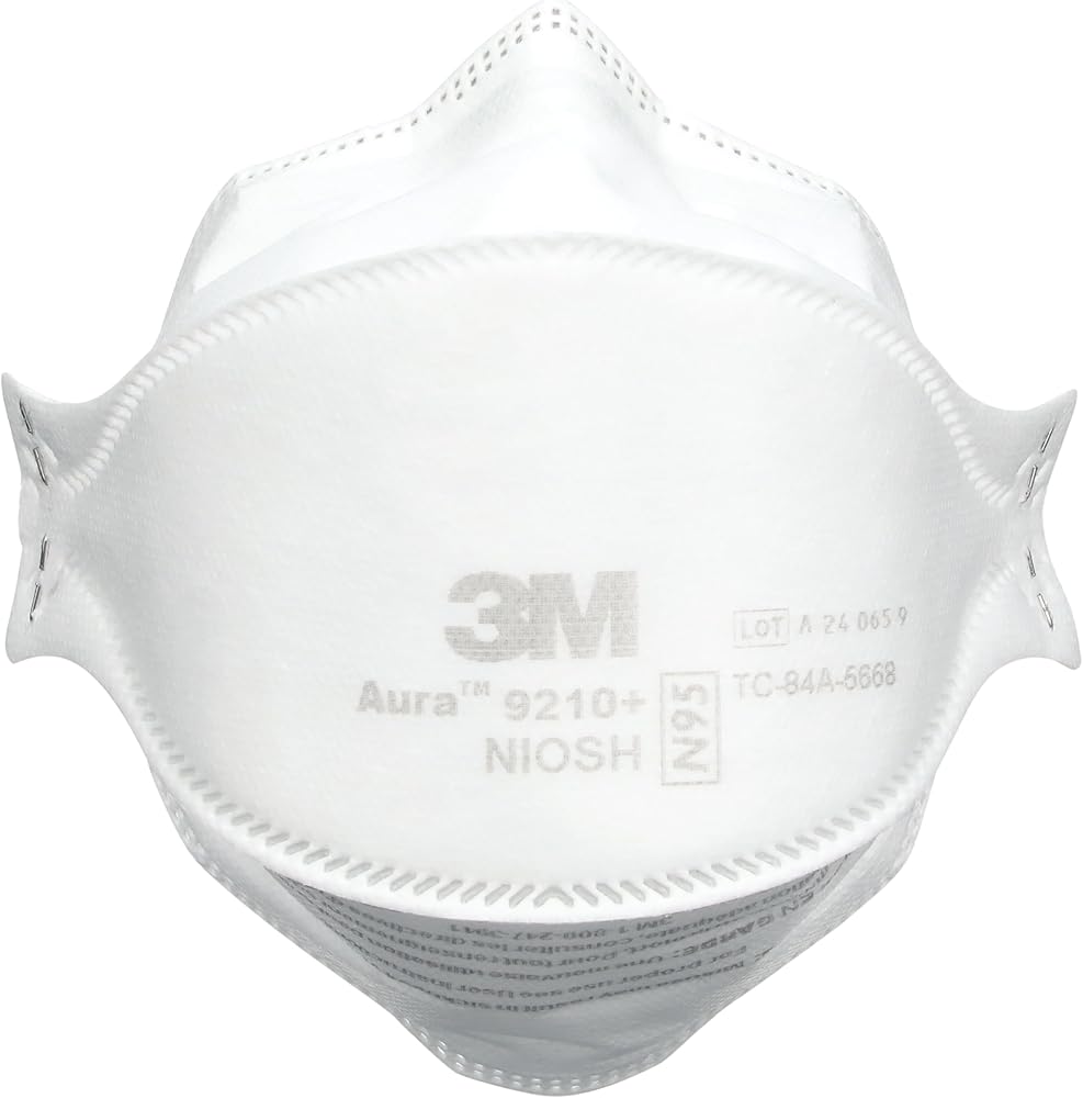 جهاز تنفس الجسيمات 3M Aura 9210+ ، N95 ، حزمة من 20 من أجهزة التنفس التي يمكن التخلص منها ، مريحة ملفوفة بشكل فردي ، تصميم معتمد من NIOSH ، وتدبيس ، التصميم المنخفض للتصميم الموضعي يقلل من تصفح النظارات