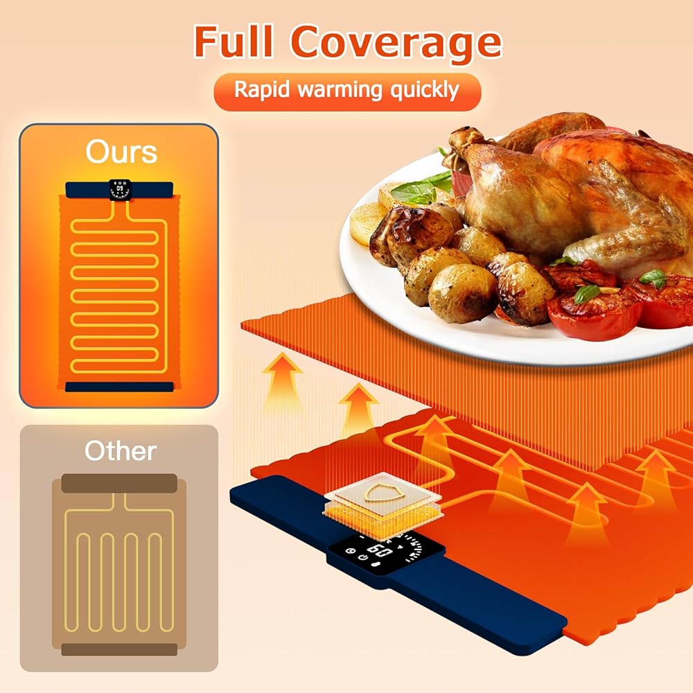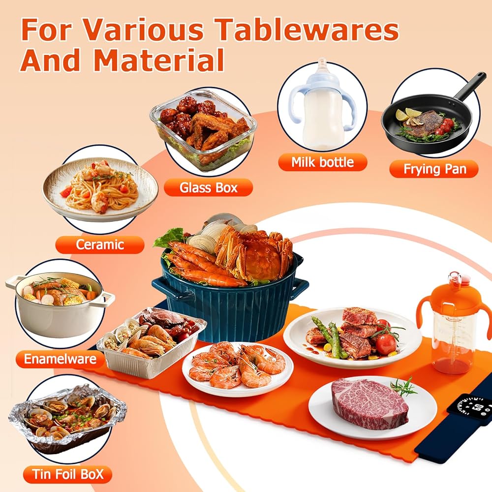 التوافق العالمي والاستخدام متعدد المنظمات: متوافق مع جميع أنواع أدوات المائدة المقاومة للدرجات الحرارة العالية ، فإن حصيرة التدفئة هذه للطعام هي مساعد المطبخ متعدد الاستخدامات. إنه مثالي للتدفئة قناع ، تخمير العجين ، إزالة الجليد ، وأكثر من ذلك. مناسبة للاستخدام المنزلي على مدار العام ، فإنه يحافظ على دافئة الطعام أثناء عشاء الأسرة والتجمعات والحفلات والسفر.