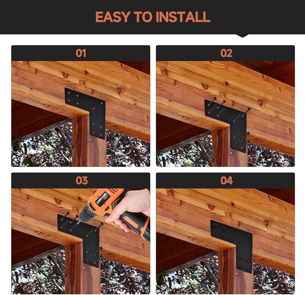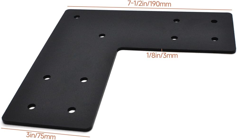 4 عبوات من دعامة زاوية مسطحة شديدة التحمل على شكل حرف L مقاس 7.5 بوصة × 7.5 بوصة × 3 بوصة لأعمدة خشبية 4 × 4 و6 × 6، للسقائف والبرجولات والأثاث والمشاريع الخشبية التي تصنعها بنفسك - موصل شعاع مسطح على شكل حرف L، قطر الفتحة 7 مم