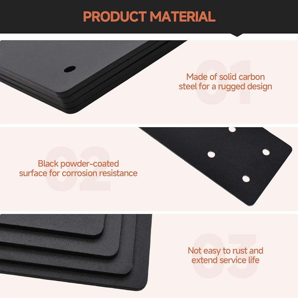 مادة متينة: يتم تصنيع شريحة الزاوية المسطحة على شكل حرف L من الصلب الكربوني عالي الجودة Q235B ، ويتم علاج السطح بطبقة مسحوق أسود ، والتي لها متانة جيدة ومقاومة للتآكل ومقاومة الصدأ. سواء تم استخدامه في الداخل أو في الهواء الطلق ، يمكن أن يوفر الدعم الموثوق به على المدى الطويل والتكيف مع مختلف البيئات القاسية