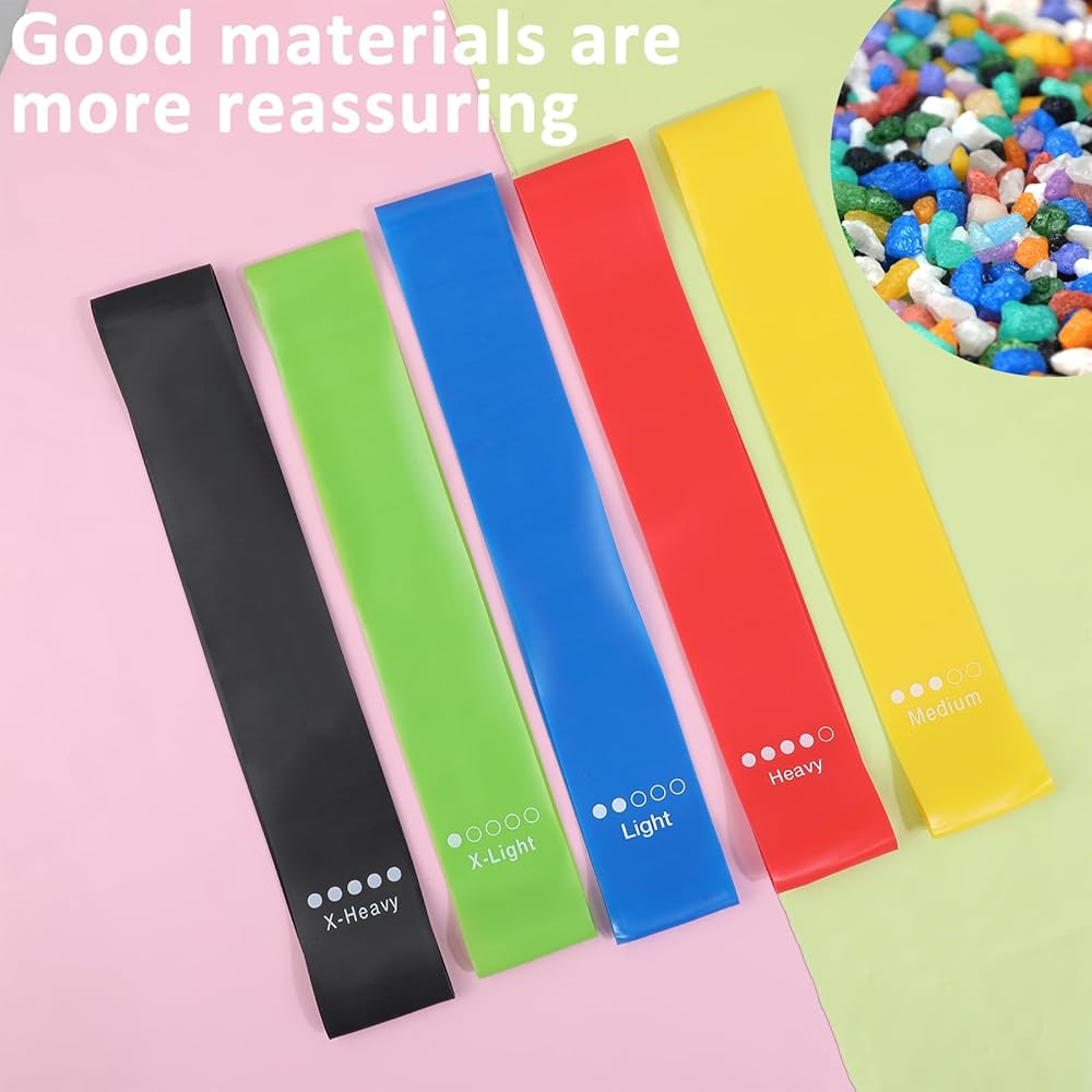 Thinp 5 قطع تجريب العصابات المقاومة للنساء عصابات المقاومة مجموعة ممارسة العصابات مع 5 مستويات المقاومة عصابات المقاومة الصغيرة تمتد العصابات لممارسة عصابات المقاومة لممارسة اليوغا