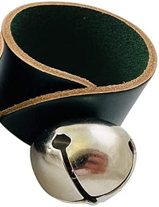 مجموعة حلقات منديل أجراس مزلقة لأدوات المائدة في عطلة عيد الميلاد وجرس نحاسي وجلد أخضر مصنوع في الولايات المتحدة الأمريكية، عبوة من 4 قطع