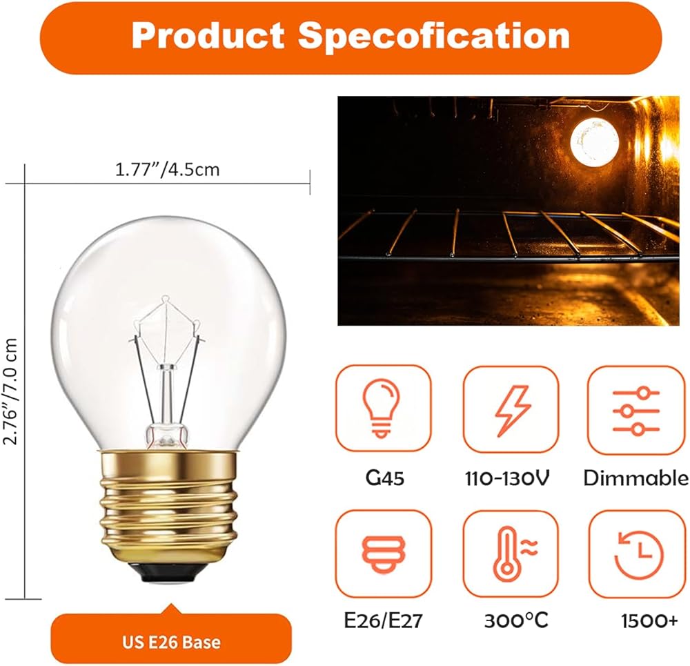 Durable High-Temp Bulbs: These 40W G45 bulbs can withstand temperatures up to 300°C (572°F), making them ideal for ovens, refrigerators, and microwaves.