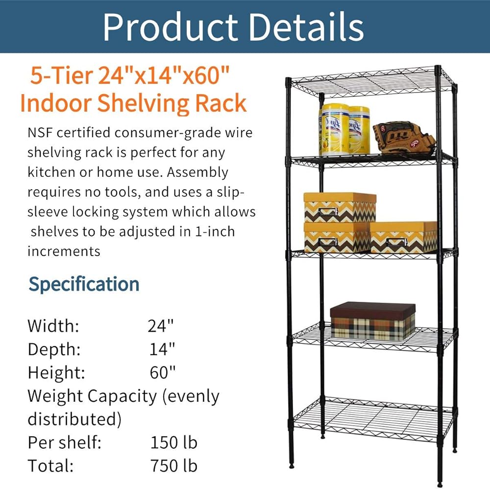 • 【100% SATISFACTION GUARANTEE】This wire shelving unit is NSF listed. Dimensions:14" Dx24 Wx60 H. We guarantee that you will like this metal storage rack, you can enjoy friendly service, we will here for you! ➊ We are fast delivery and guarantee that our customers receive our products within 3-7 days. ➋ If item was damaged, please contact us! we will sent replacement parts free of charge in few days.If you are not satisfied with this storage rack, please feel free to ask!