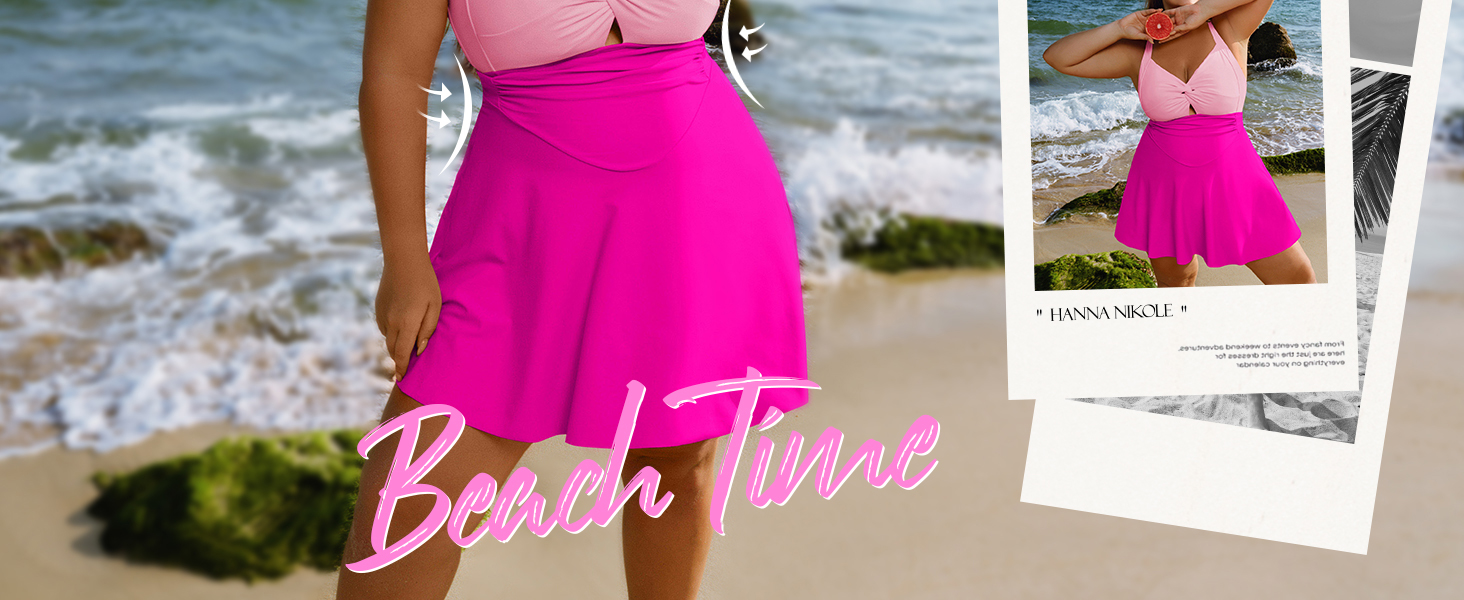 شورت بدلة للجسم للتحكم في البطن: تتميز بدلة السباحة هذه بسروال قصير على شكل بطن لمزيد من التغطية والدعم، مع أربطة جانبية تربط الشورت الداخلي بالتنورة الخارجية على شكل حرف A لتعزيز المرونة ومنع التحول. ابق آمنًا أثناء السباحة أو حمامات الشمس أو لعب الكرة الطائرة الشاطئية