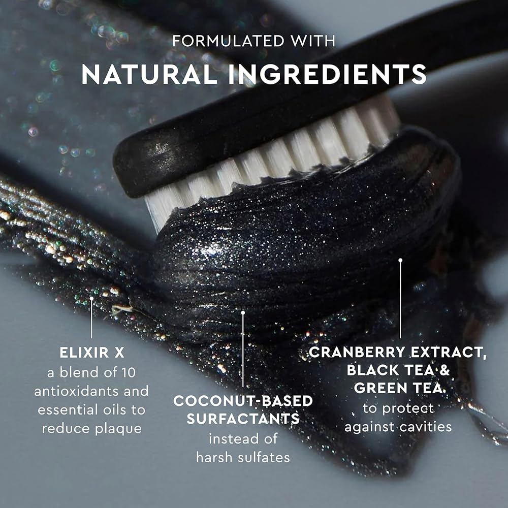 فلوريد وإكسير X - قمنا بصياغة معجون أسنان مجاني SLS مع فلوريد لحماية التجويف الإضافية. كما أنه يستخدم Elixir X ، وهو مزيج خاص من 10 مضادات الأكسدة والزيوت الأساسية لتقليل البلاك وتطهير الأسنان ودعم صحة اللثة.