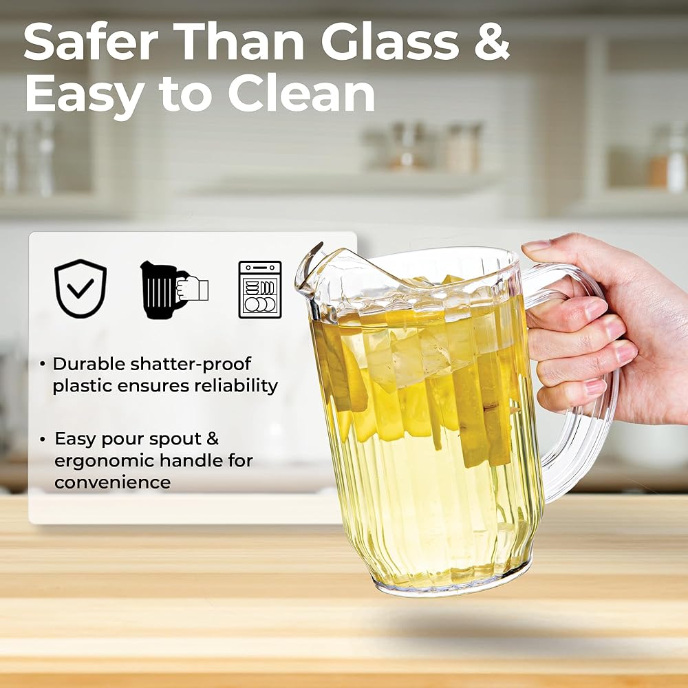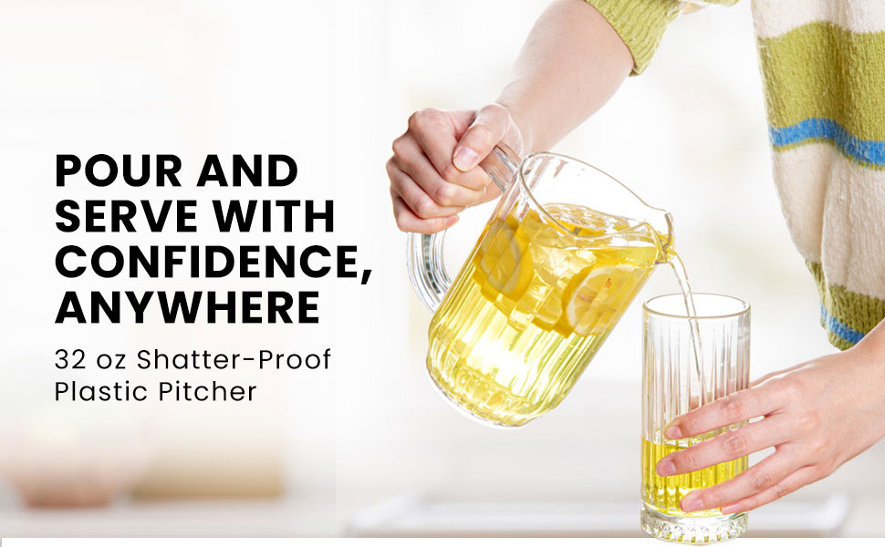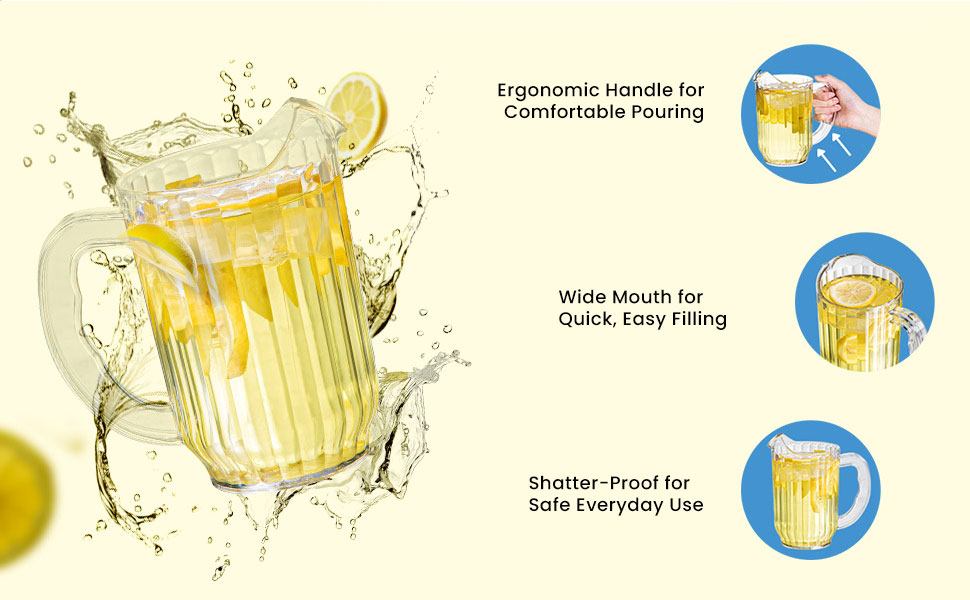 DURABLE, LIGHTWEIGHT DESIGN: Manufactured from shatter-resistant plastic, this pitcher is incredibly durable and designed to withstand daily use. Plus, its lightweight design makes it easy to carry!