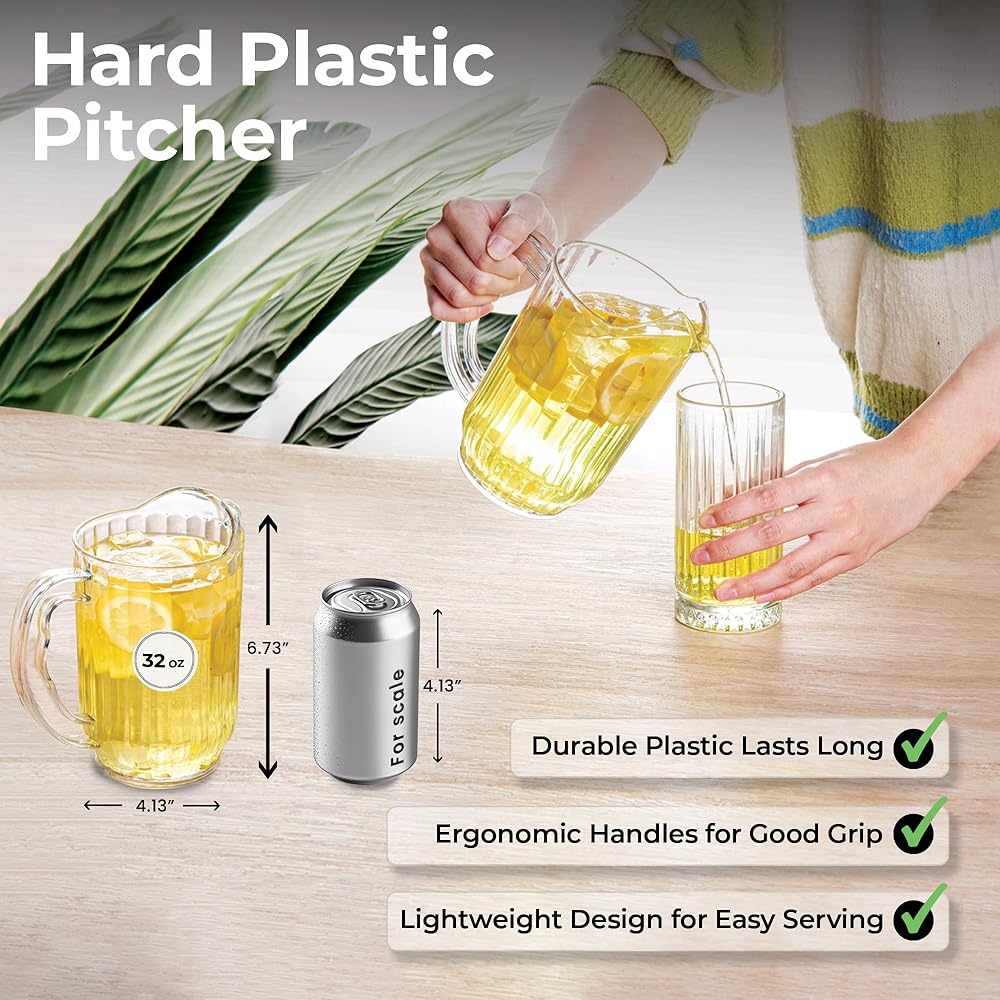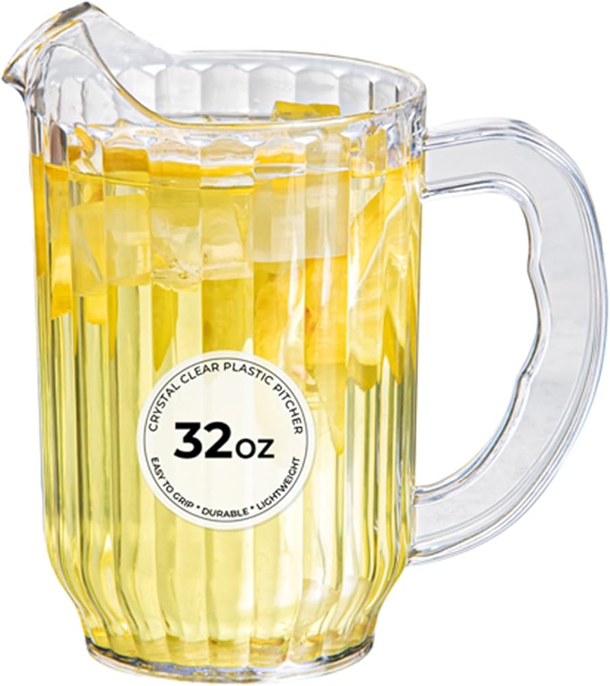 إبريق بيرة صغير سعة 32 أونصة من RW Base، إبريق مطعم متين - بلاستيك صلب، يقدم الصودا أو عصير الليمون أو العصير أو السانجريا، إبريق ماء بلاستيكي شفاف، للحانات، أو الحفلات، أو المنازل، - أدوات المطاعم