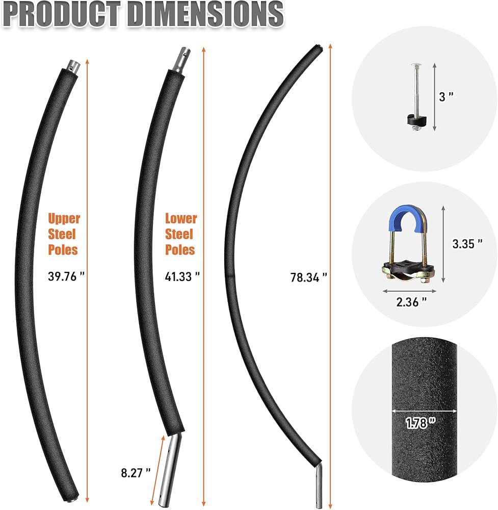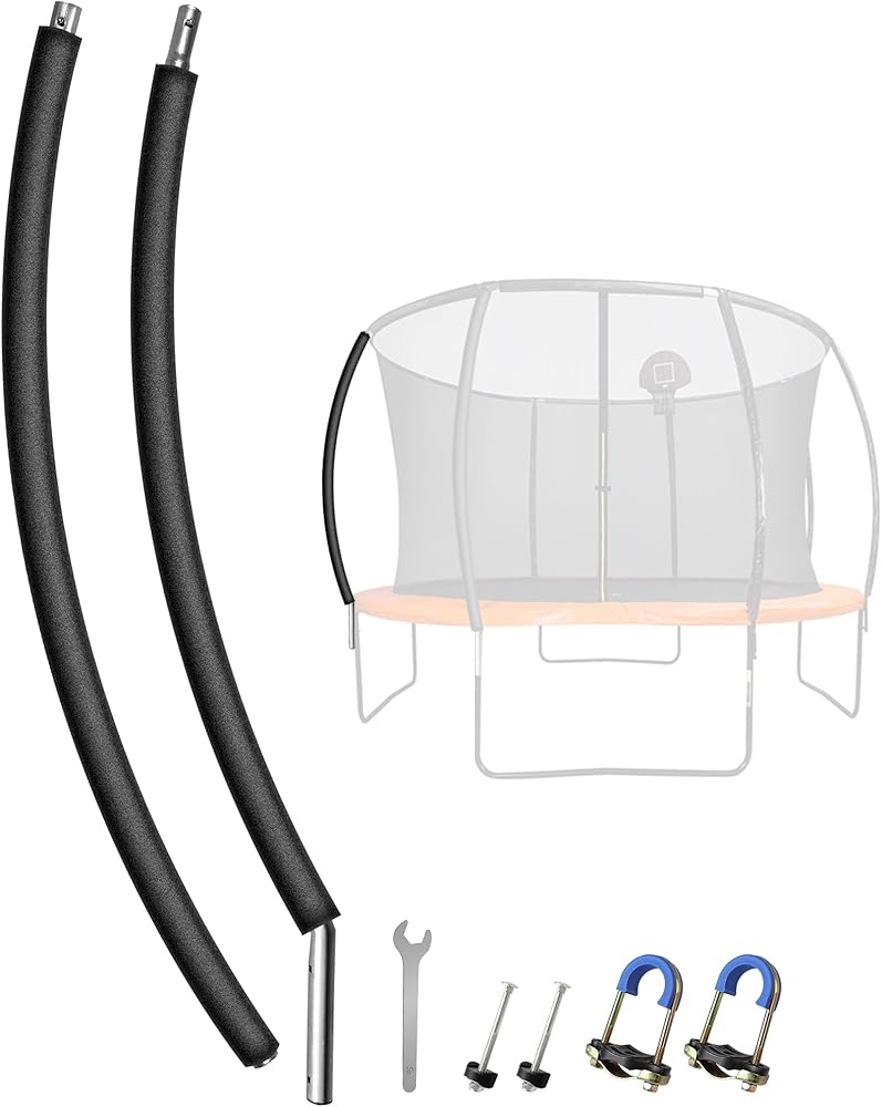 قطعة واحدة من عمود الترامبولين المنحني، عمود استبدال عمود الترامبولين العالمي ليناسب إطار الترامبولين ذو العمود المنحني 8-16 قدم، يتضمن غطاء إسفنجي وأجهزة لخيارين للتركيب