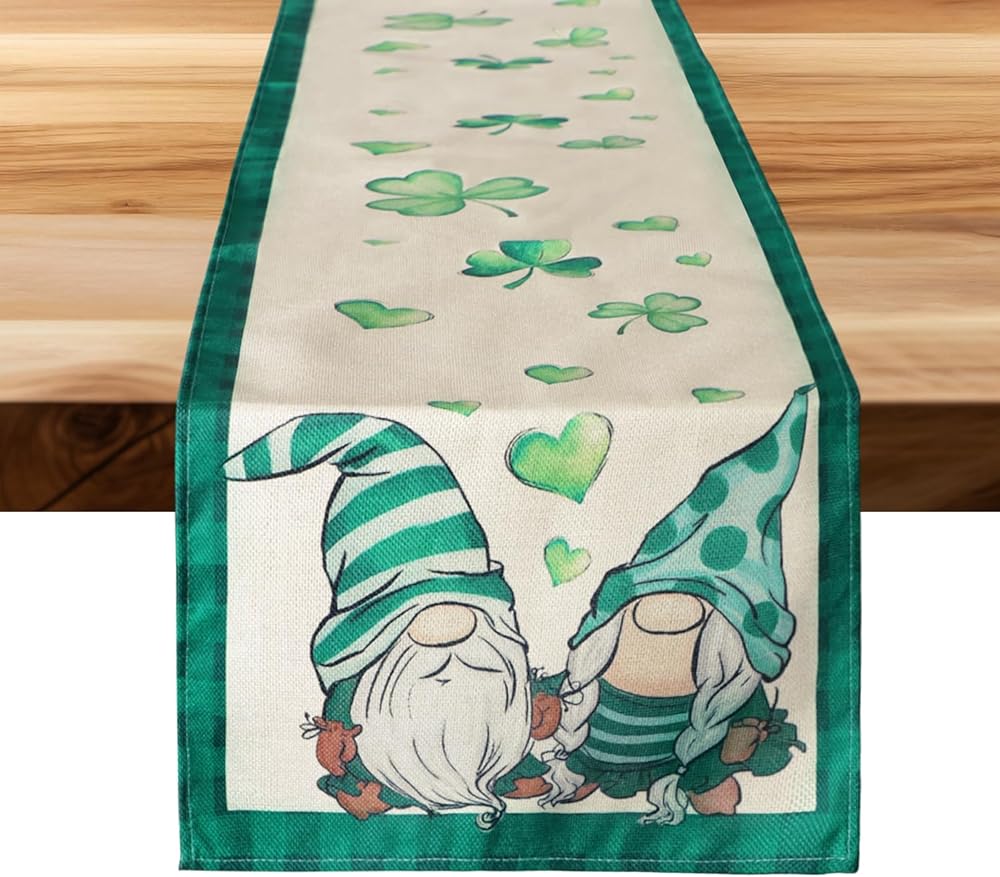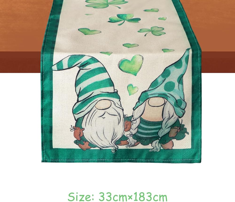 🍀 Machine wash and lay the table runner flat to dry. Stays the same and as new after every wash. Material: 100% Polyester, no shrink, no fading.