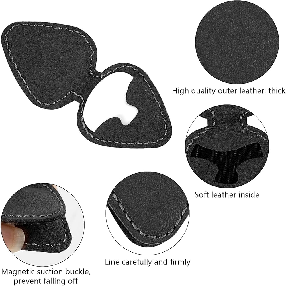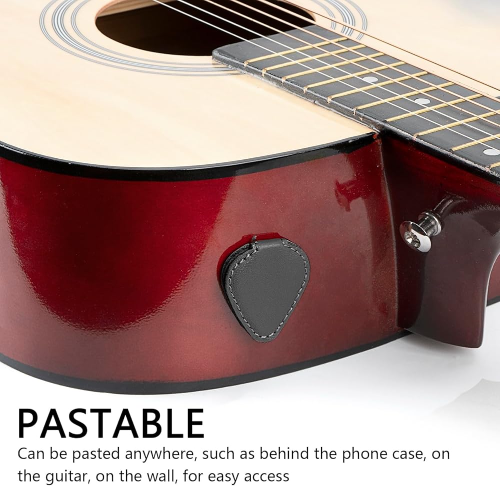 - دعم لاصق قوي: يتم تثبيته بأمان على أي سطح مستوٍ على الجيتار أو مكبر الصوت أو حامل الموسيقى، مما يحافظ على اختياراتك في متناول اليد.