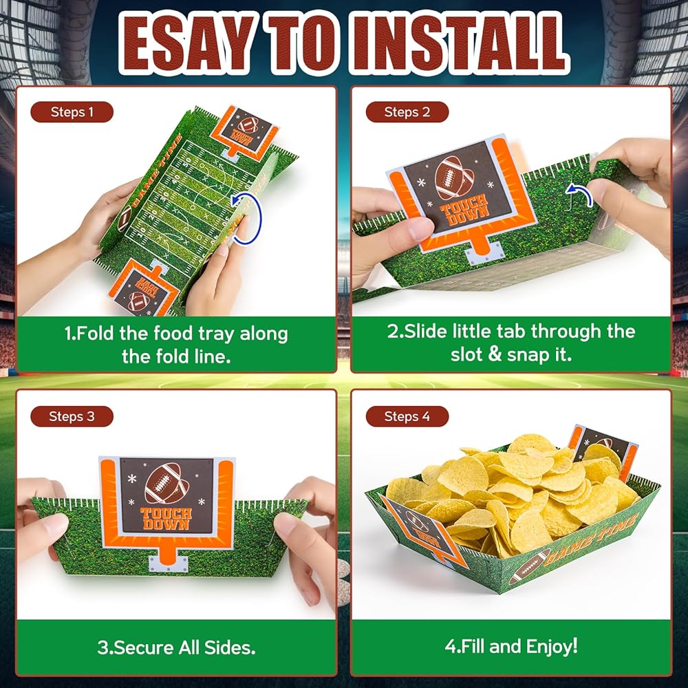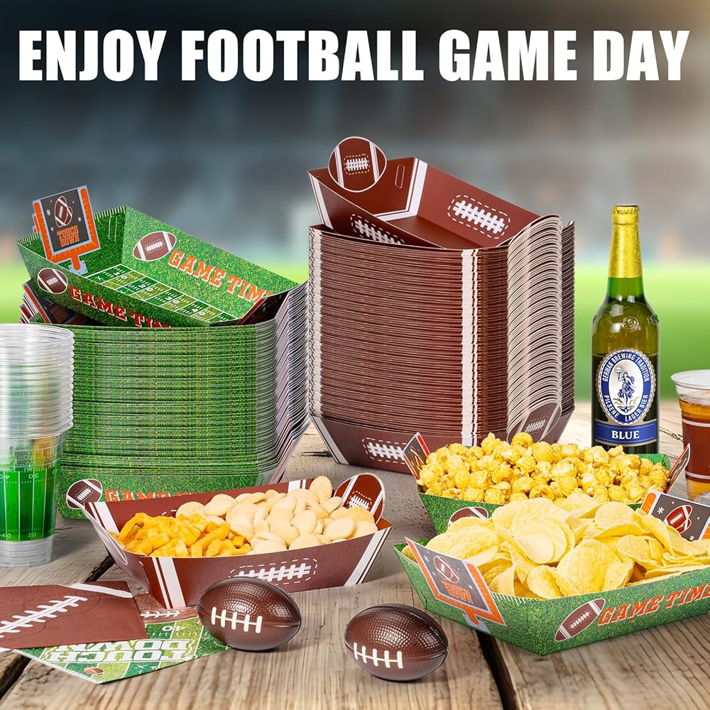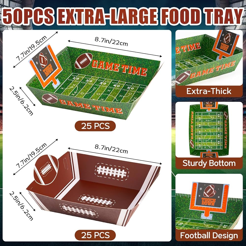 لوازم تزيين حفلات كرة القدم من إيكومور، 50 قطعة من أطباق طعام كرة القدم الكبيرة جدًا لديكورات حفلات أعياد ميلاد كرة القدم، صواني طعام ورقية للاستعمال مرة واحدة، صواني تقديم الوجبات الخفيفة، هدايا حفلات كرة القدم