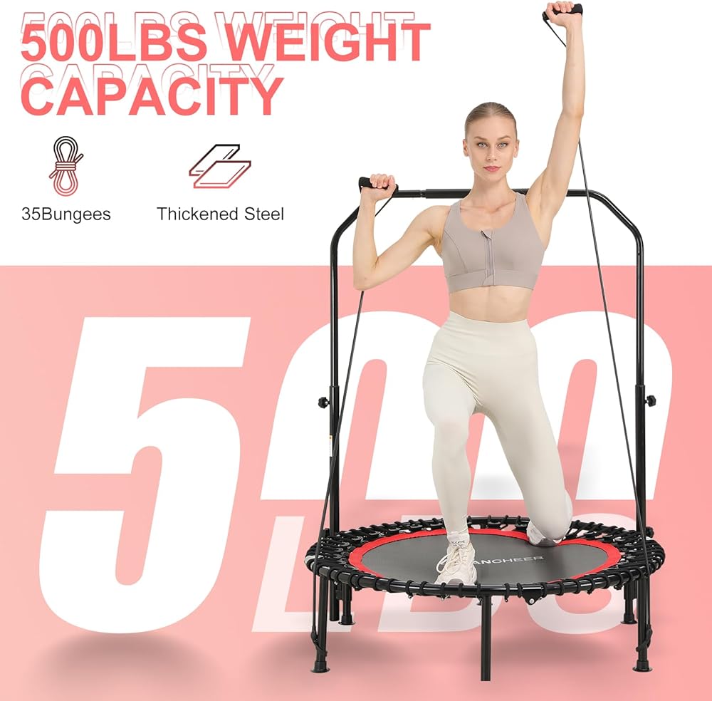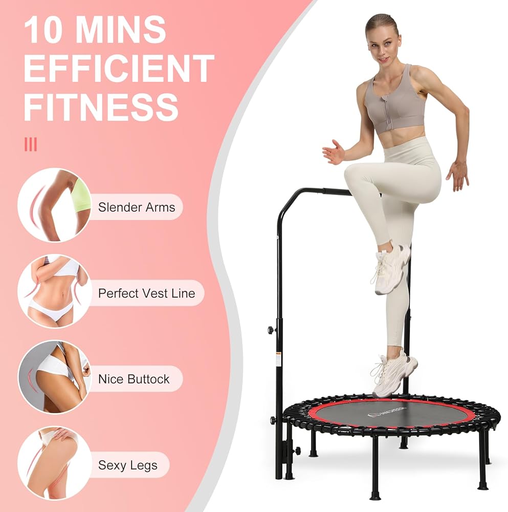Tramposter Trampoline للبالغين ، Mini 40 "تمرينات قابلة للطي الترامبولين مع مقبض قابل للتعديل ، حمولة كحد أقصى 450 رطلاً ، مستقرة ومتينة للتمرين الداخلي