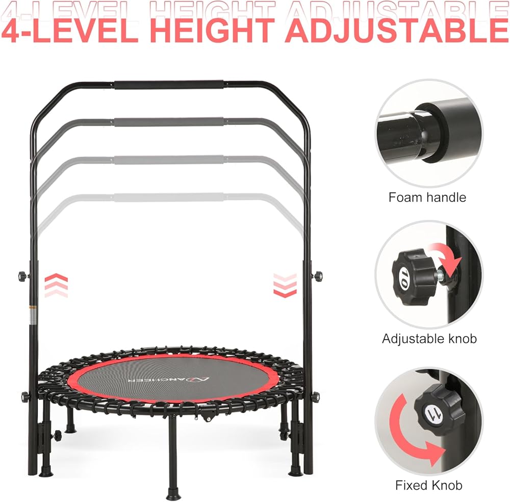 • مناسبة لجميع الأعمار: مقود قابل للتعديل من 4 مستويات للتخصيص: تخصيص الترامبولين القابل للطي لاستيعاب ارتفاعات مختلفة دون عناء مع المقود القابل للتعديل. هذه الميزة الرائعة تجعلها مناسبة للمستخدم من جميع الأعمار ، مما يضمن تجربة كذاب مخصصة وممتعة.
