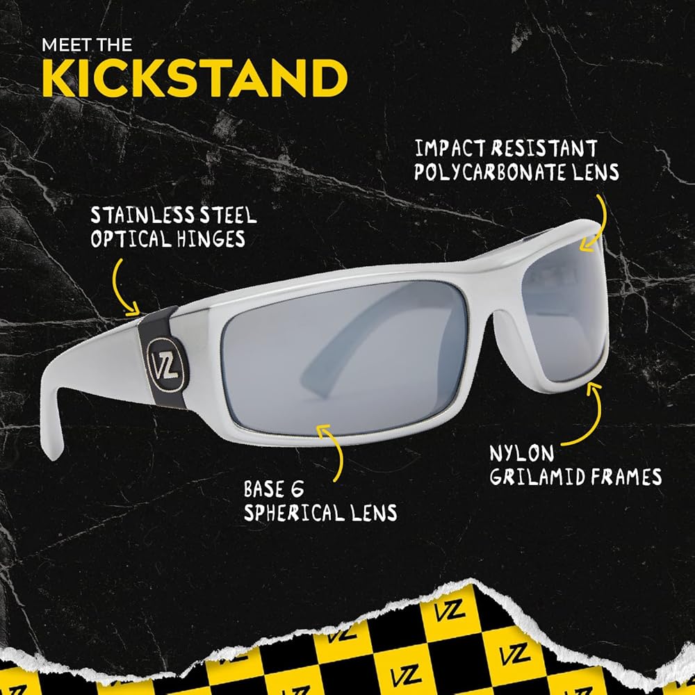 نظارات شمسية VonZipper Kickstand غير مستقطبة للرجال والنساء، كروم فضي مع مسند رمادي، عدسات بولي كربونات مقاومة للصدمات، نظارات شمسية مع حماية من الأشعة فوق البنفسجية وHEV 62 مم