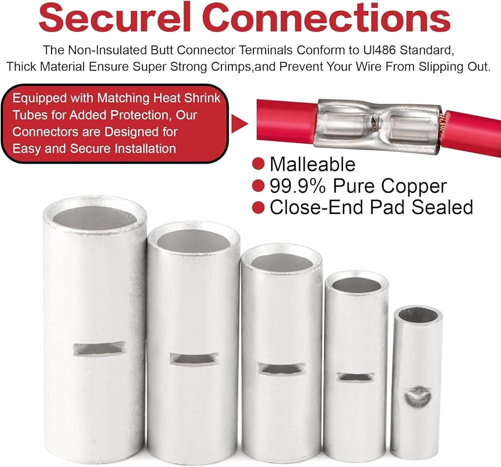 【اتصالات Securel】 تم اختبارها للامتثال لمعايير السلامة المدرجة في UL و ABYC ، يمكن لمحطات العيينة النحاسية هذه تحمل درجات الحرارة العالية دون ذوبان. المواد السميكة تضمن تجعيد قوي للغاية وتمنع انزلاق الأسلاك.