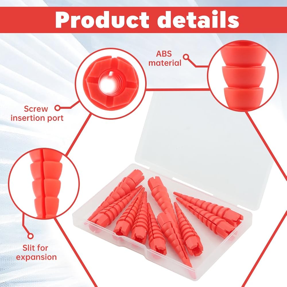 10 PCS مرساة الخشب ، مجموعة إصلاح ثقب المسمار المسمار للخشب , ثقوب المسمار من جردت إلى تمسكها , مجموعة إصلاح فتحة فتحة الباب , براغي مفصلي الباب ، حشو فتحة الخشب (اللون: أحمر)