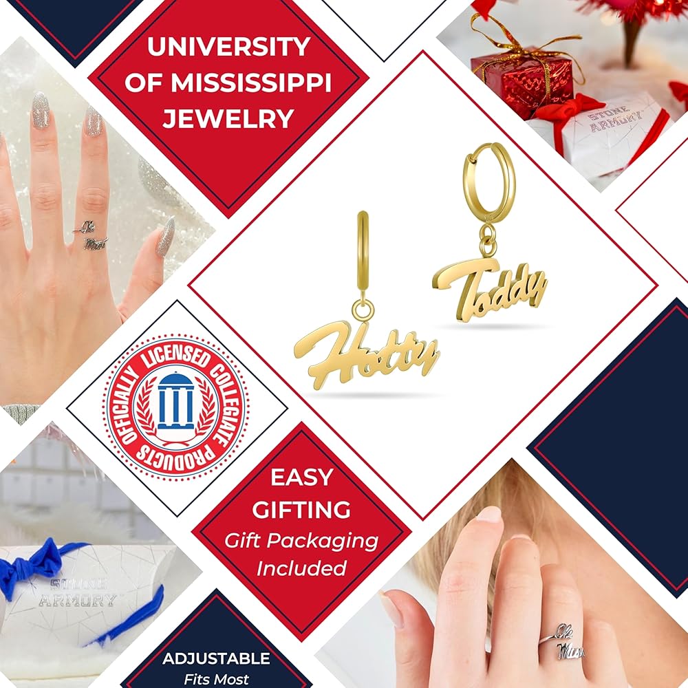 أقراط Stone Armory لـ Ole Miss Rebels - مجوهرات من الفولاذ المقاوم للصدأ مطلية بالذهب عيار 18 قيراط مصممة للبشرة الحساسة - هدية لمحبي جامعة ميسيسيبي والنساء والخريجين