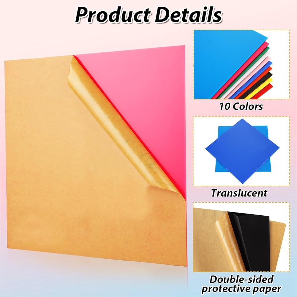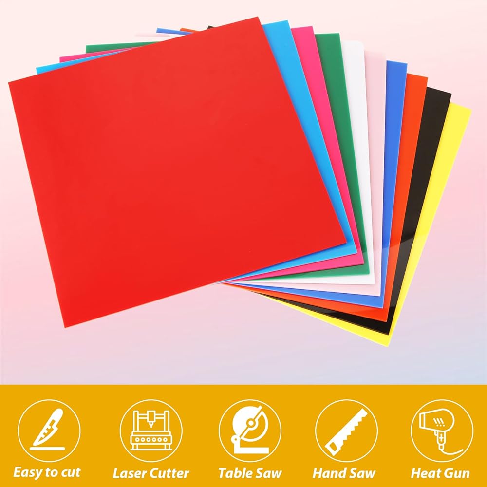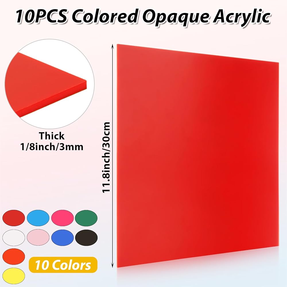10PCS Colored Acrylic Sheets 1/8 Thick Colored Plastic Sheets 12 x12 x 1/8 Inch