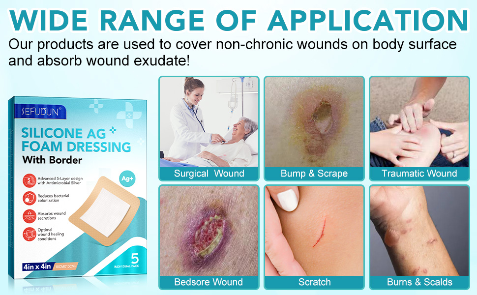 رعاية مثالية للجرح: حدود سليكون رغوة السيليكون 4 "x4" مناسبة للجروح في غضون 2.6 "× 2.6" ، وهو أمر رائع ومقاوم للماء وامتصاص. تستخدم لجروح معتدلة إلى نضح للغاية مثل جروح السرير المقدس ، والشقوق الجراحية ، وقروح الضغط ، وقرحة الساق الوريدية ، والتمزق في الجلد ، والحروق والمزيد