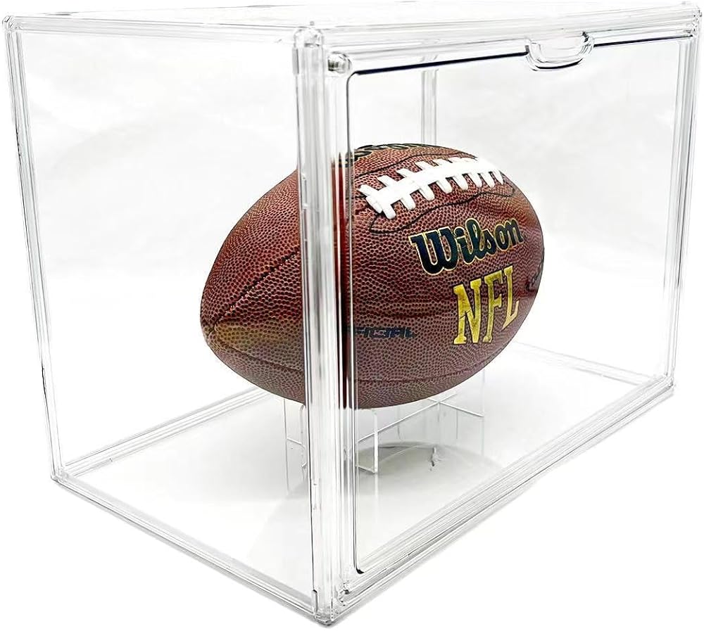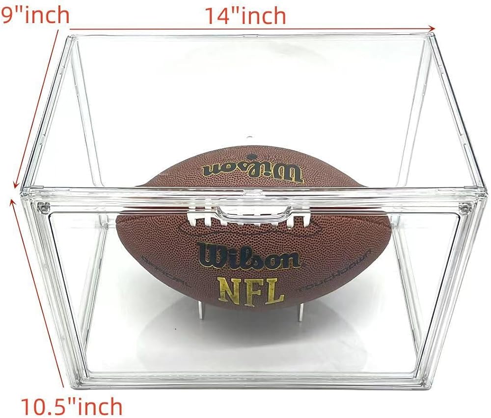 ✔FOOTBALL DISPLAY BOX - This case display case is a great way to display your special football. Our clear acrylic box is not just good for football storage but is also good for sport caps and baseballs. You can use it to display your collectibles such as sneaker, baseball gloves, action figures, model cars and more
