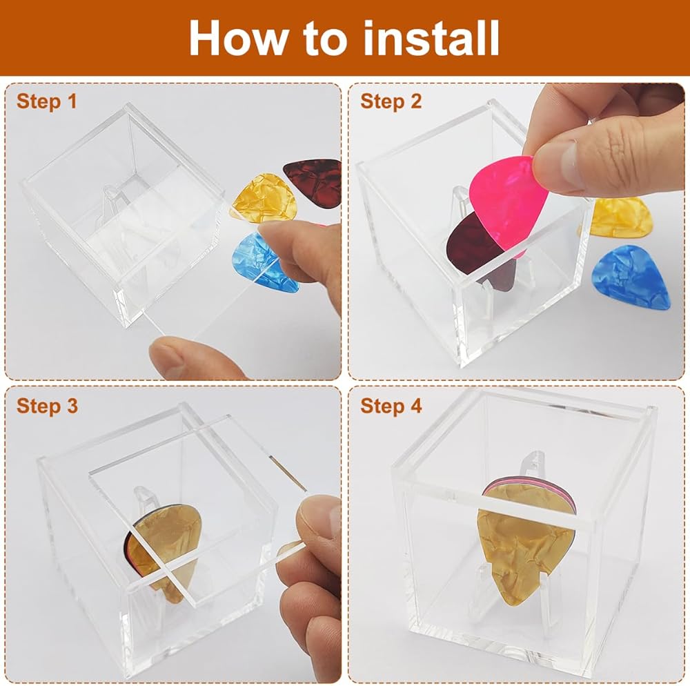 4 قطع من حامل اختيار الجيتار الأكريليك، حافظة اختيار الجيتار SourceTon، حقيبة عرض اختيار الجيتار، عرض حلقة لريشات الجيتار، الخواتم، عرض حلقات البطولة، التجميع، التخزين