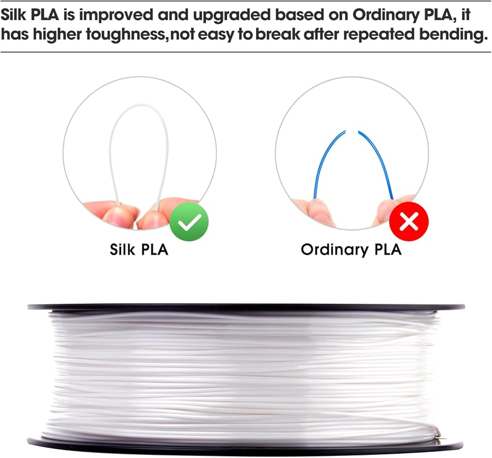 【خيوط PLA الحريرية اللامعة】 النهاية الناعمة واللامعة مثل الحرير الحقيقي ، والطباعة بتفاصيل عالية تؤدي إلى النهاية الجميلة. ظهور ناعم من الحرير اللامع الممتاز بدون خطوط سلسلة واضحة. مثالي لمشاريع Cosplay and Decoration والمزهريات وأي عناصر مطبوعة ثلاثية الأبعاد أخرى يمكن أن تستفيد من مظهر سلس حريري فريد.
