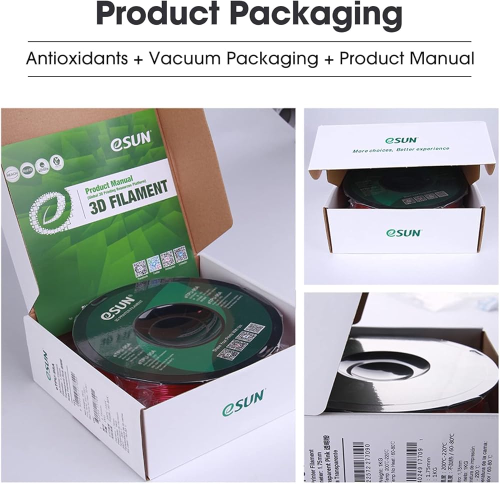 【تغليف مغلق بالفراغ】 شبكة الشبكة الشبكية: 0.8 كجم (0.2 كجم / لفة ، 4 لفات مربع واحد). يأتي خيوط Esun في كيس فراغ مختومة مع حقيبة مجففة ، وحافظ بسهولة على خيوط الطابعة ثلاثية الأبعاد في حالة تخزين مثالية وخالية من الغبار أو الأوساخ قبل فتح العبوة المختومة بالفراغ.