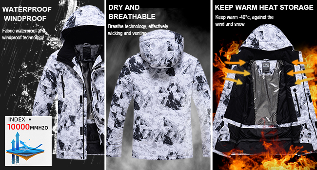 مقاوم للماء: باستخدام تقنية النسيج عالية الأداء عالي الأداء ، منع غزو المطر والثلوج بشكل فعال ، لمنع تسرب المياه. قابل المطر والثلوج والتزلج وغيرها من الرياضات الشتوية في الهواء الطلق.
