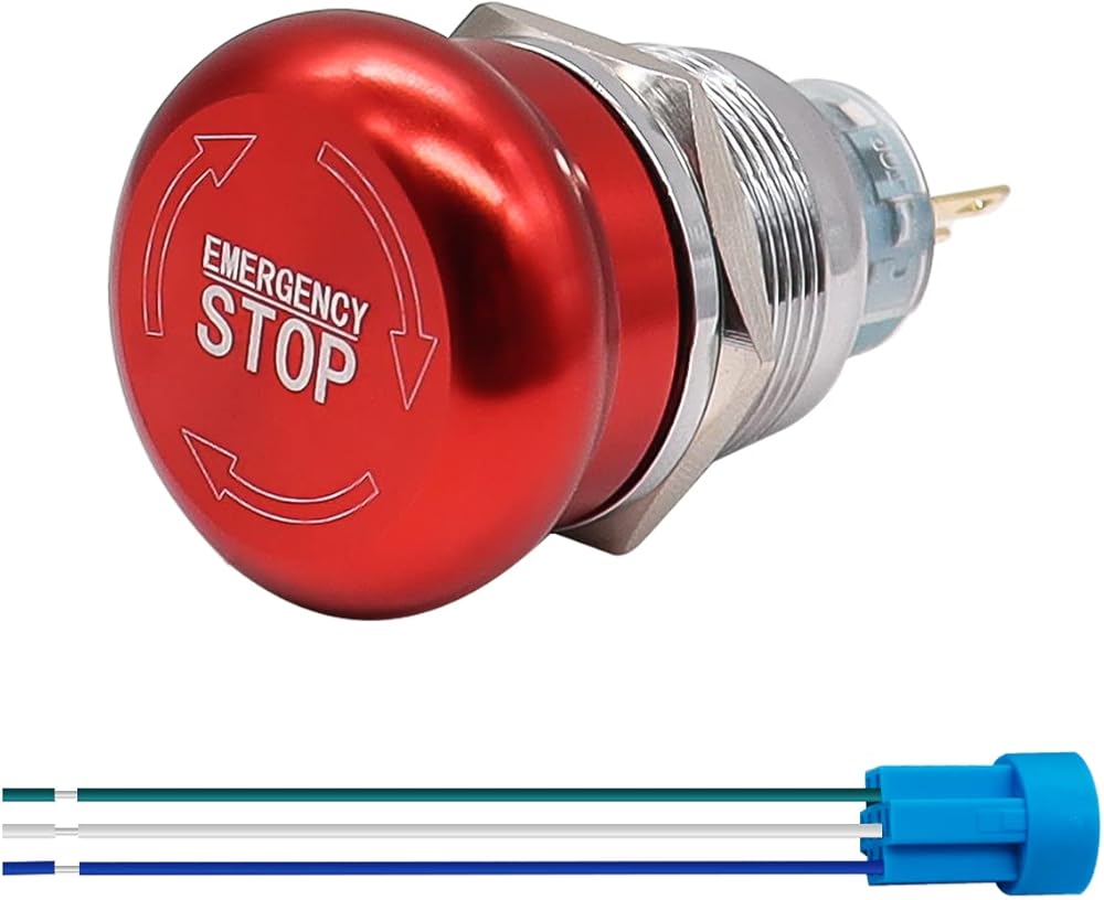 With a one-year warranty service, you can replace it free of charge if you have problems within one year. This switch Push to stop and lock, twist to reset. The switches are structured compactly and operated quickly and gently. For emergency stop in industry with the conspicuous red mushroom cap.