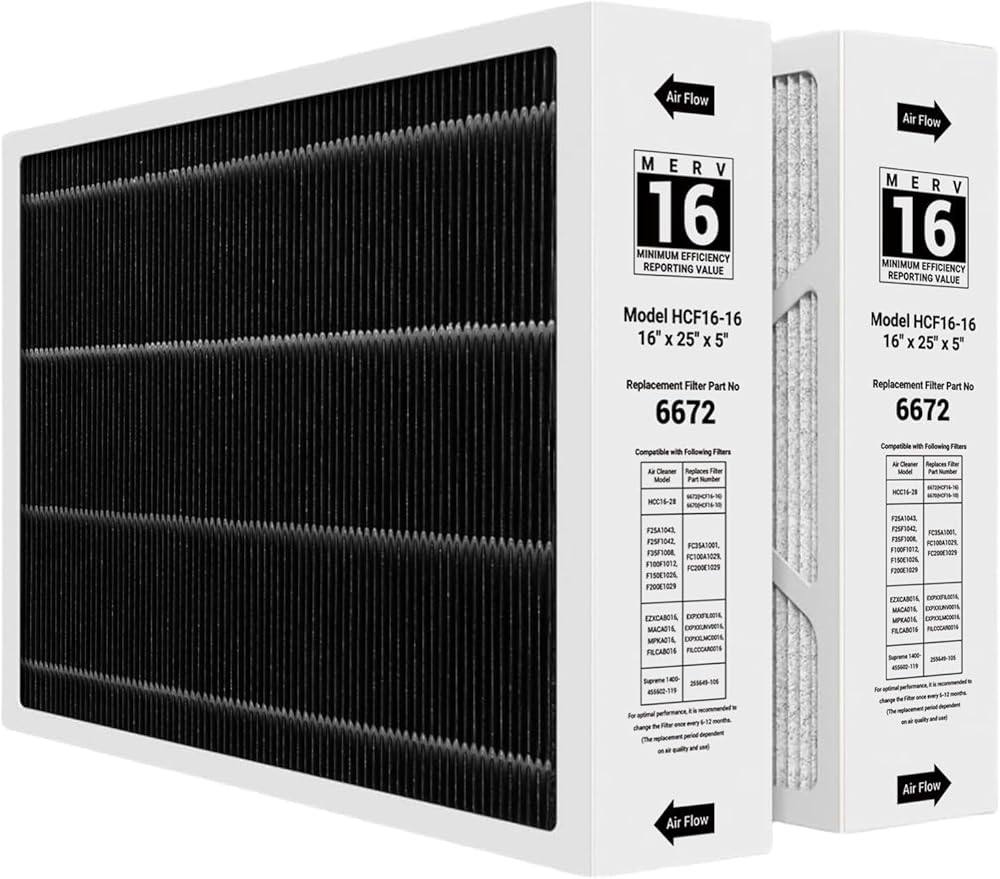 Perfect Compatibility: The X6672 16x25x5 MERV 16 Filter Compatible with Lennox X6672 Healthy Climate Carbon Clean Merv 16 Home Furnace Filter for HVAC System, Part Number HCF16-16. The X6672 filter is designed to replace the Lennox HCC16-28 model and fits many models accepting 16x25x5 filters.