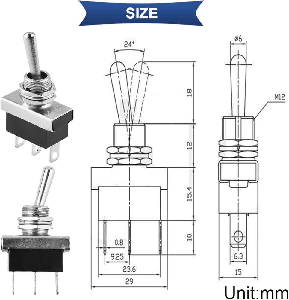 Size: Switch: 29 x 15 x 57mm / 1.14 x 0.59 x 2.24inch : Mounting Thread Diameter:12mm / 0.47inch